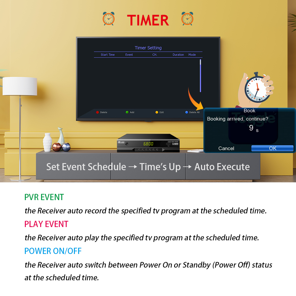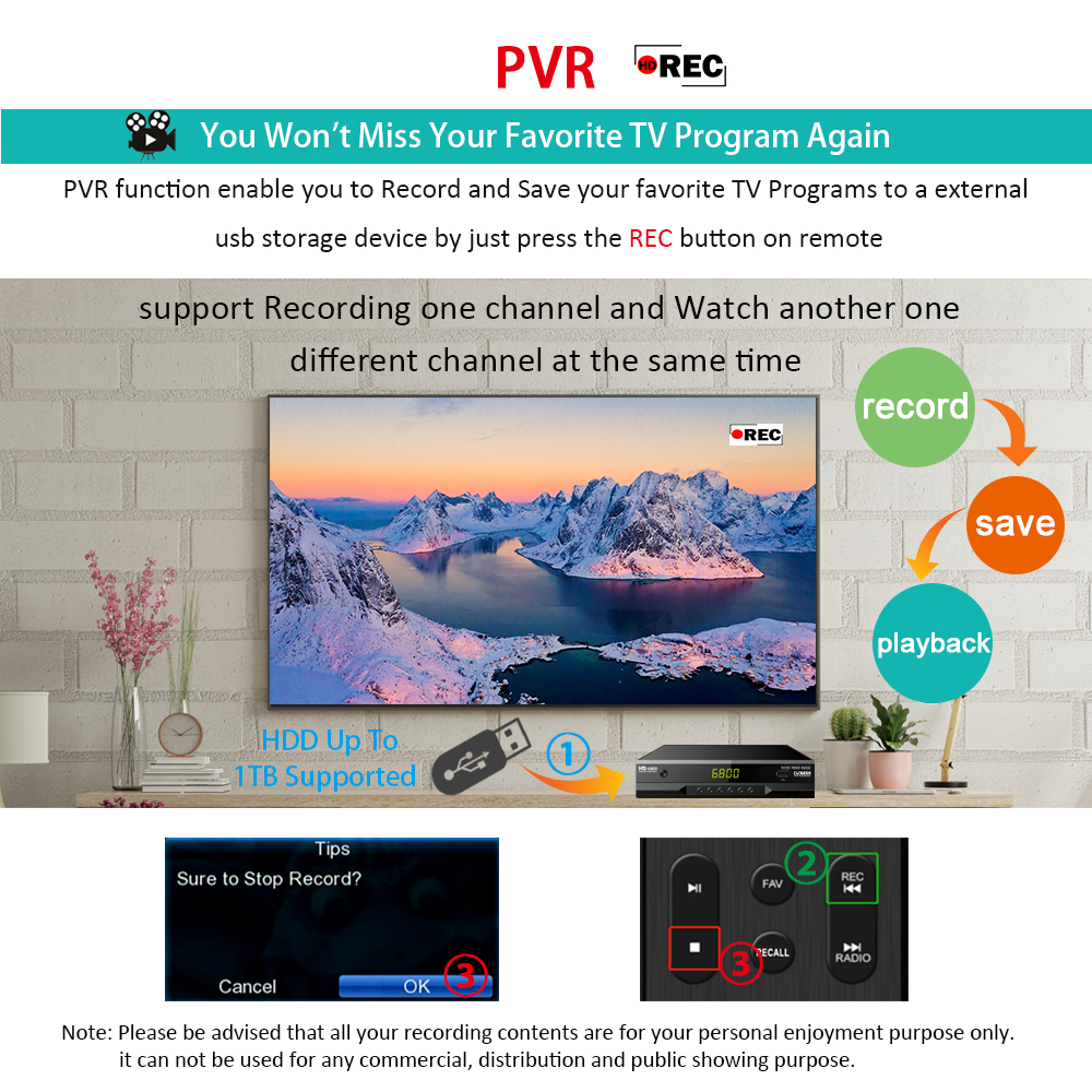 5. Support PVR, TimeShift, 7days EPG, Timer, Multi-Media Playback from USB storage device