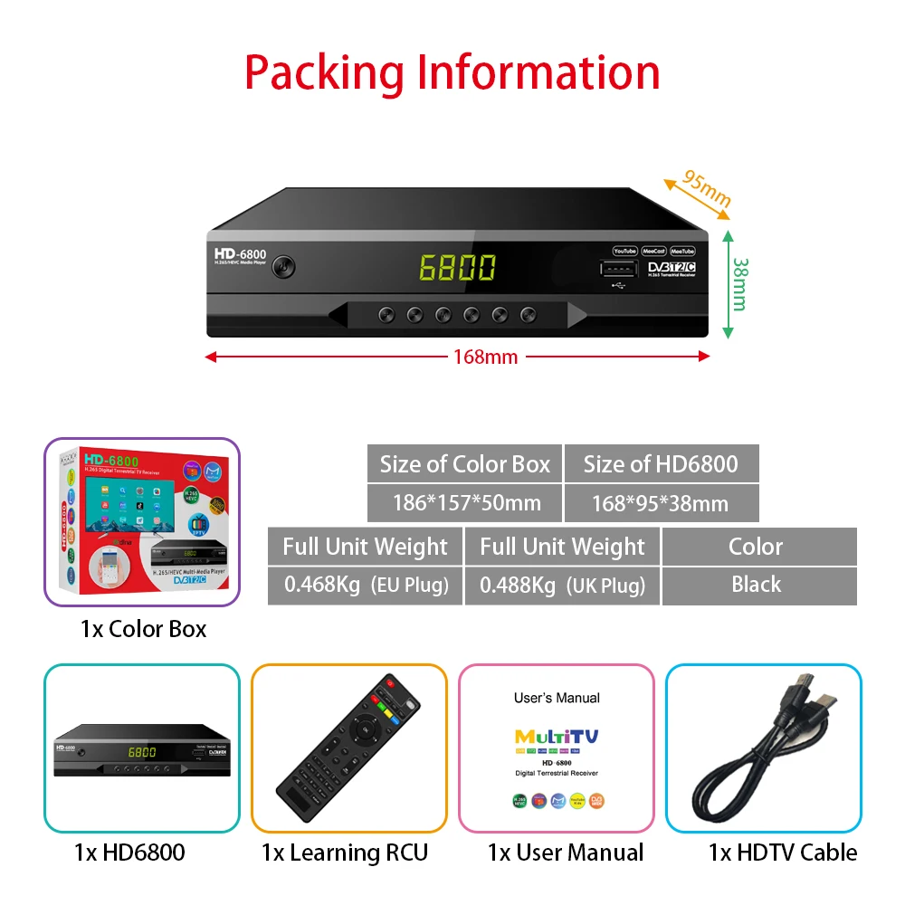 1. Fully compliant with DVB-T/T2+C digital tv standards.