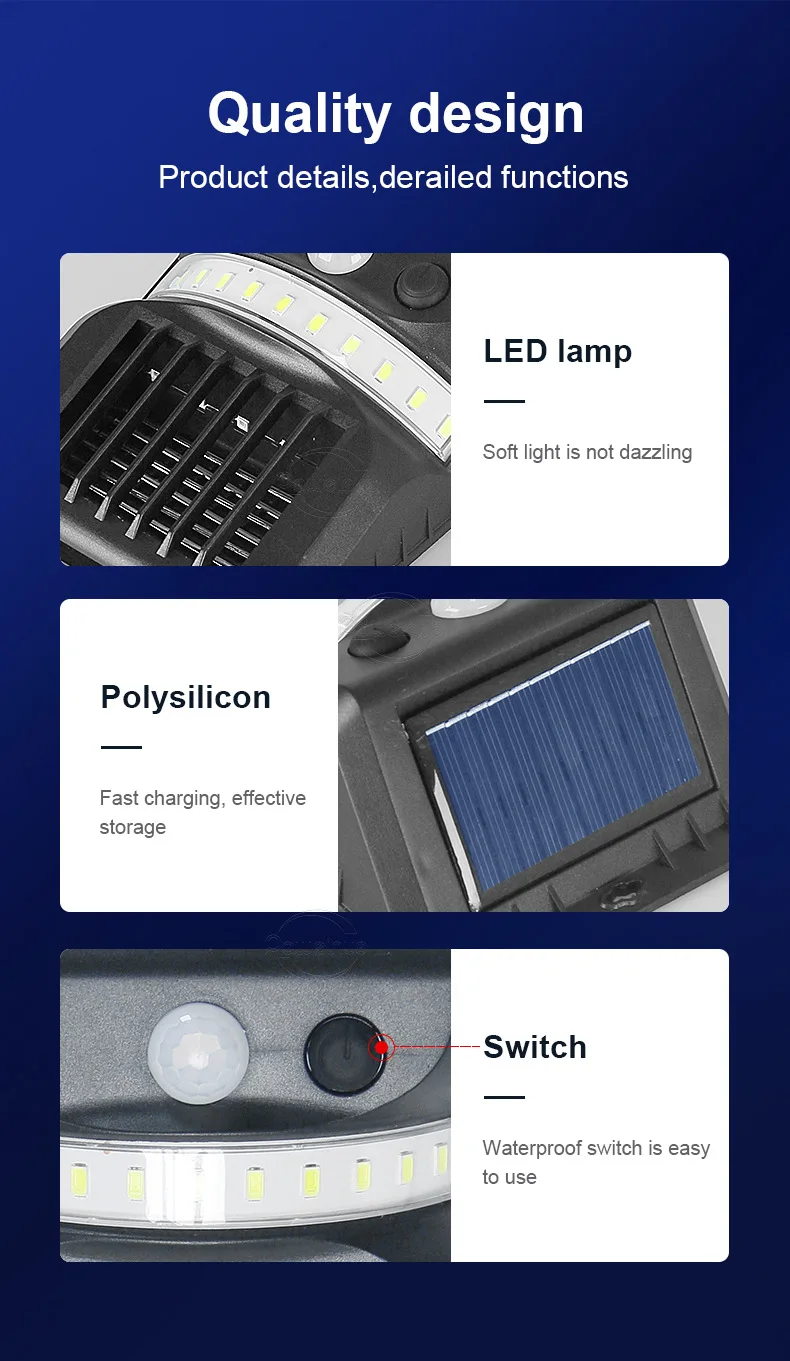 4. Солнечная зарядка, фиолетовый светильник для привлечения комаров, Электрический шок для уничтожения комаров;