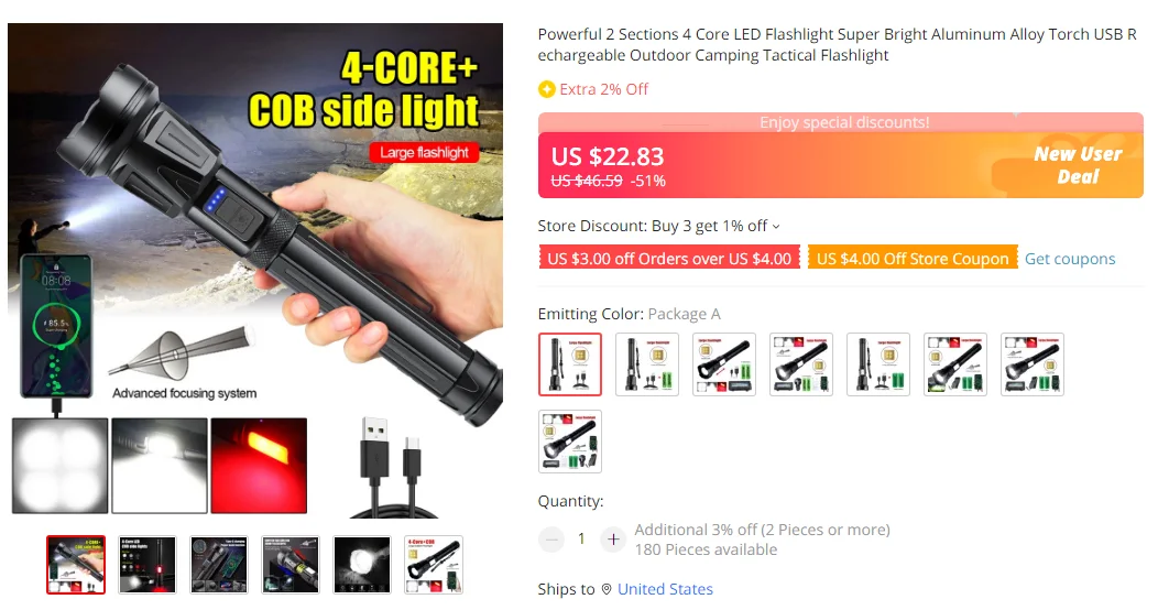 Светильник ing режим: белый сильный светильник-белый слабый светильник-Желтый сильный светильник-желтый слабый светильник-красный светильник флэш-нажмите и удерживайте кнопку супер сильный светильник