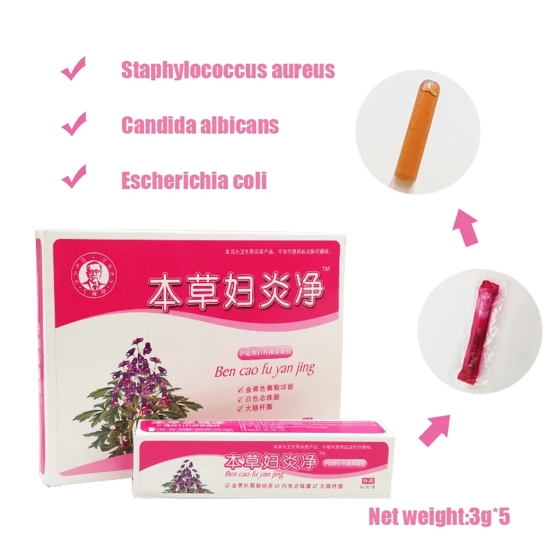 Этот продукт подходит для воспаления шейки матки, заторов влагалища и отеков, вызванных вагинитом, повышенными выделениями, запахом, зуда, гнойными симптомами, также может уменьшить степень местного воспаления, уменьшает эрозию шейки матки.