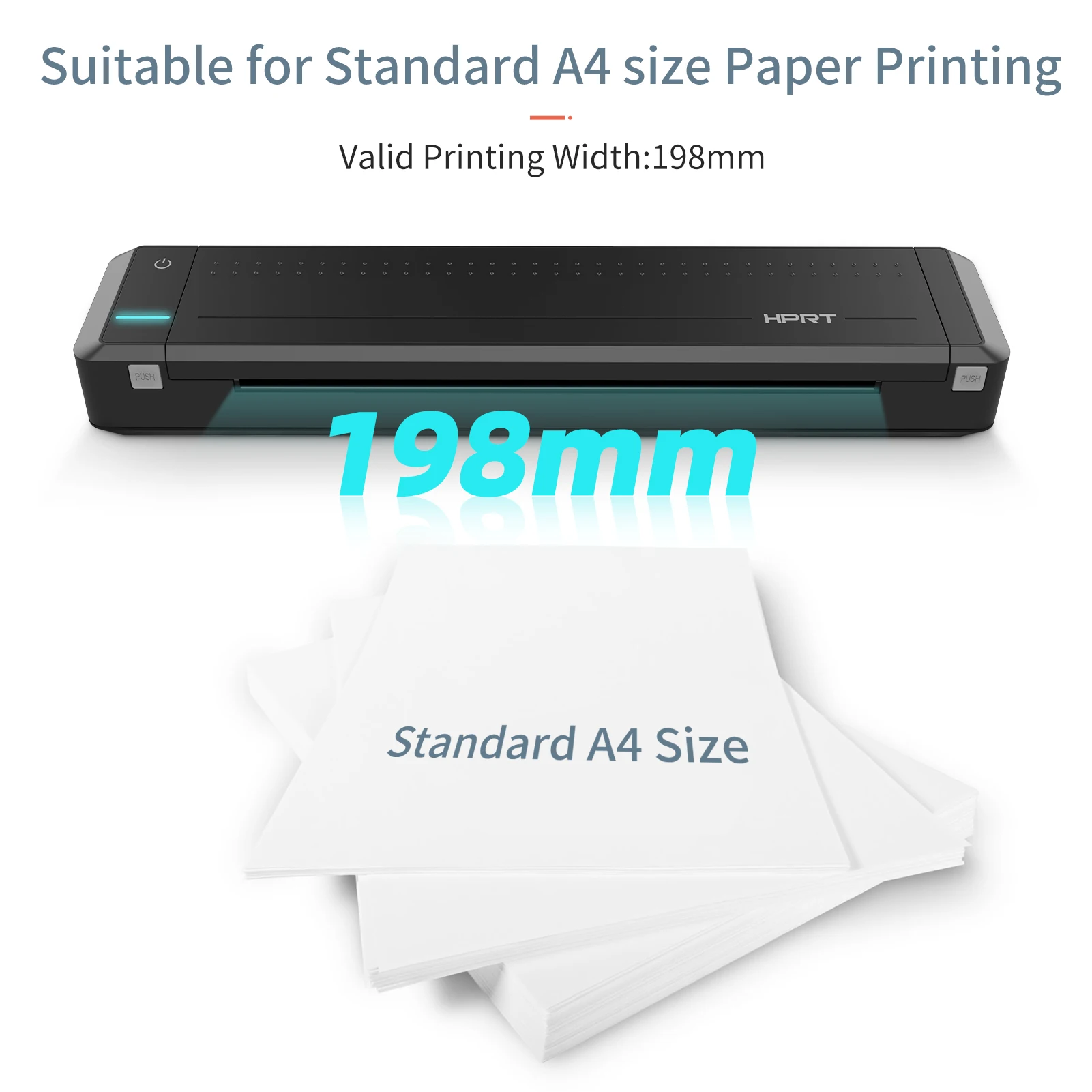 Портативный термопринтер-Размер термопринтера HPRT MT800 составляет всего 310x63,5x39,5 мм, он весит до 650 мл бутылки воды, отлично подходит для хранения в сумке, рюкзак или багаж.
