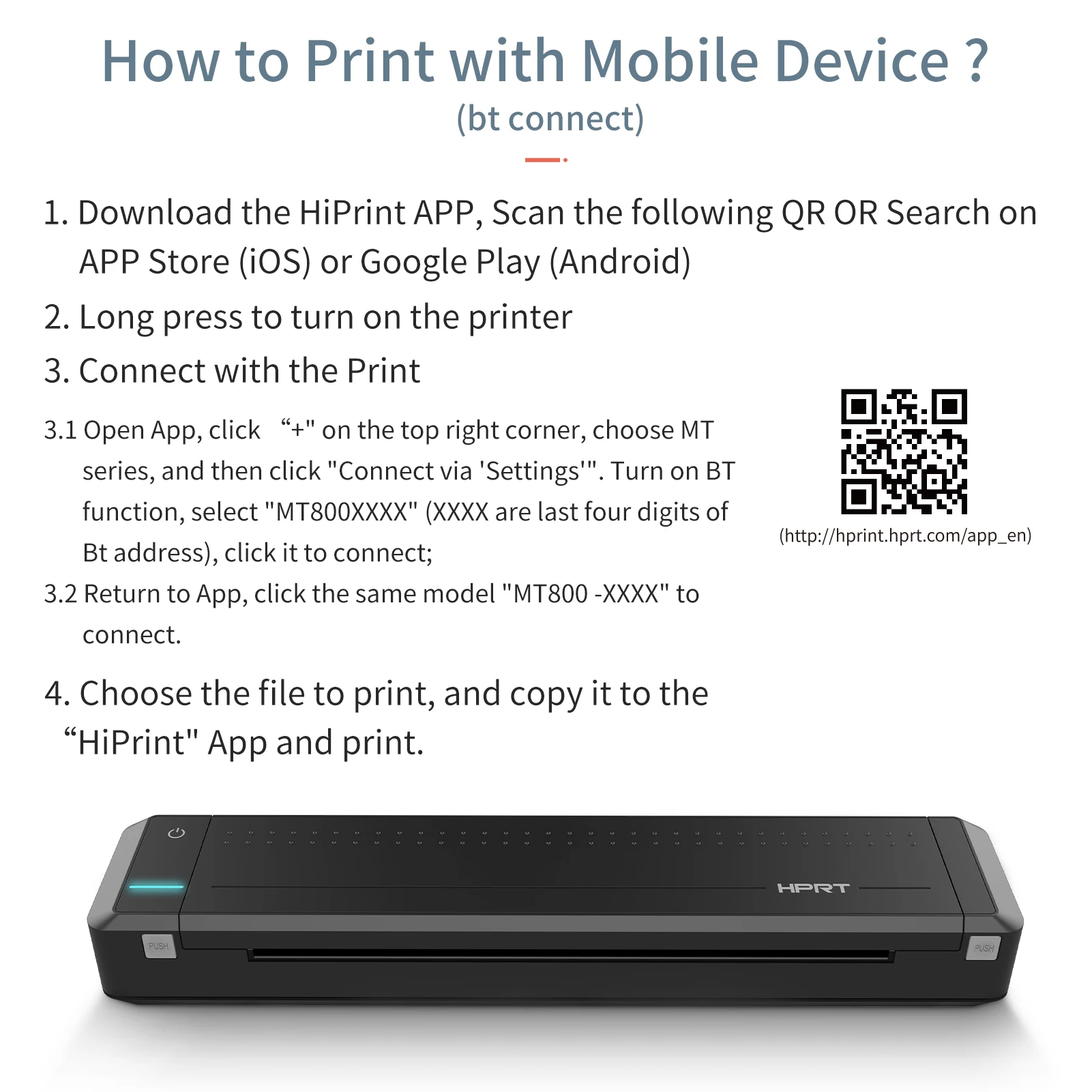 2. Загрузите приложение «HiPrint»: отсканируйте qr-код в инструкции; Или найдите «HiPrint» в App Store (iOS) или Google Play (Android)