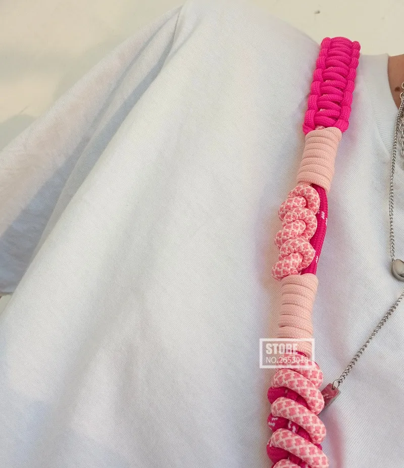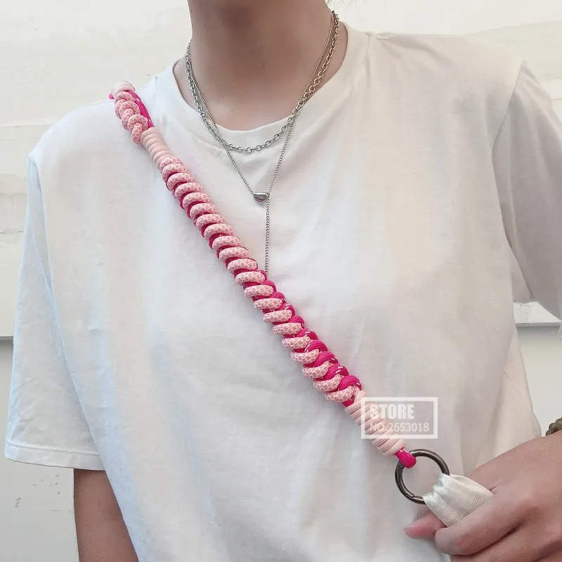 Веревка для подвешивания мобильного шнура розовые полоски брелок ремешок ручной работы изысканный чехол для телефона плечевой ремень металлический круг Сумка ремень