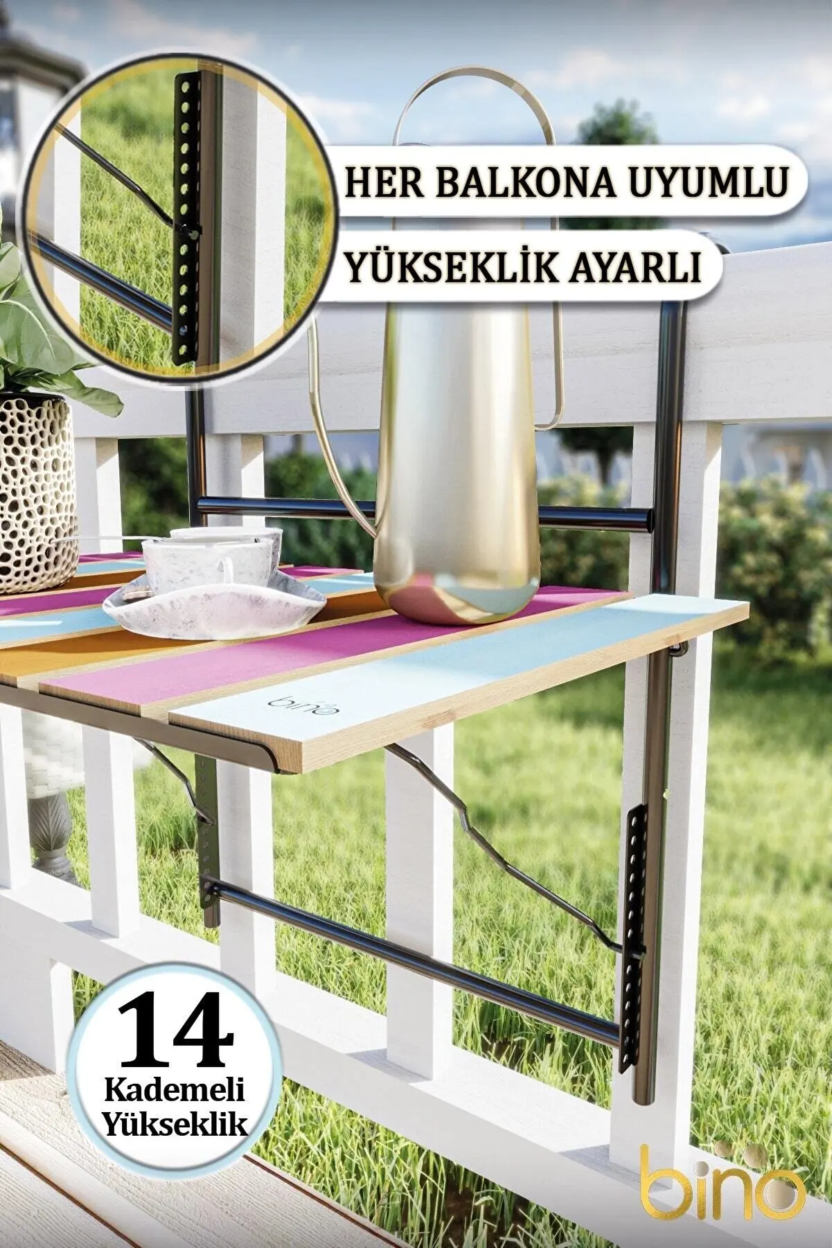 Изделие, которое прикрепляется к балконным перил, Совместимо с любым балконом длиной до 85 мм.