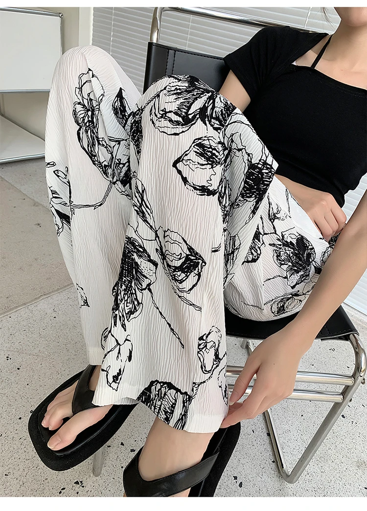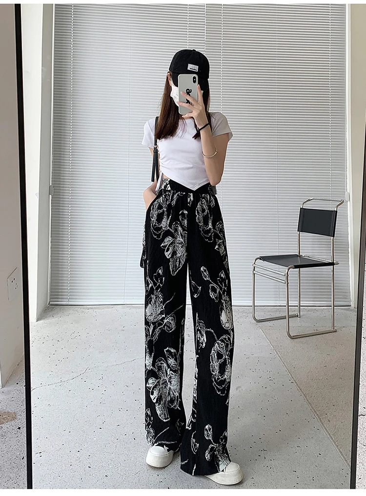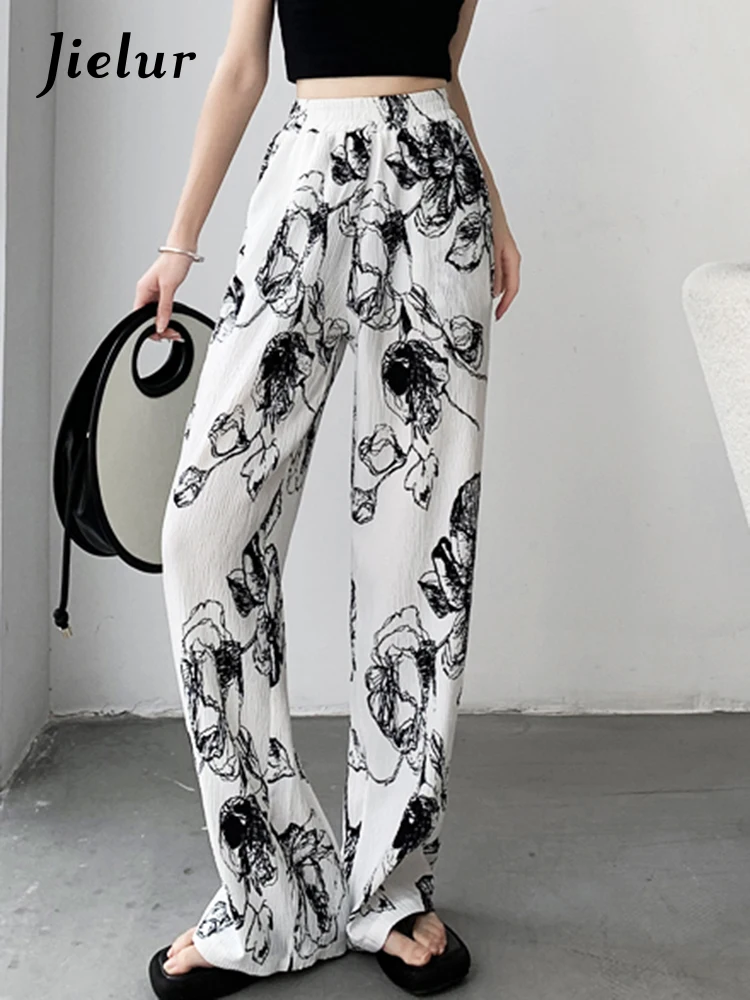Отзывы о Jielur Новые плиссированные ледяные шелковые крутые длинные брюки женские черные