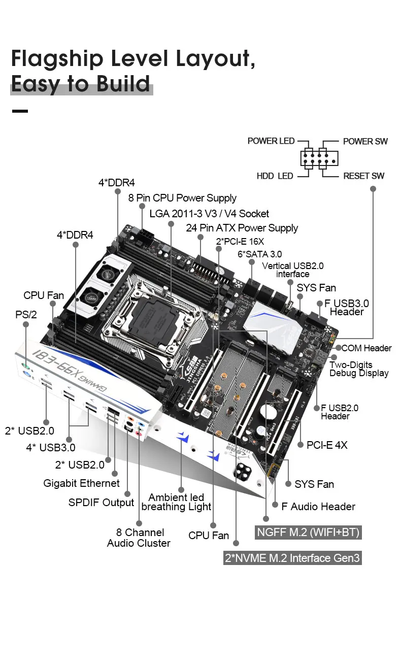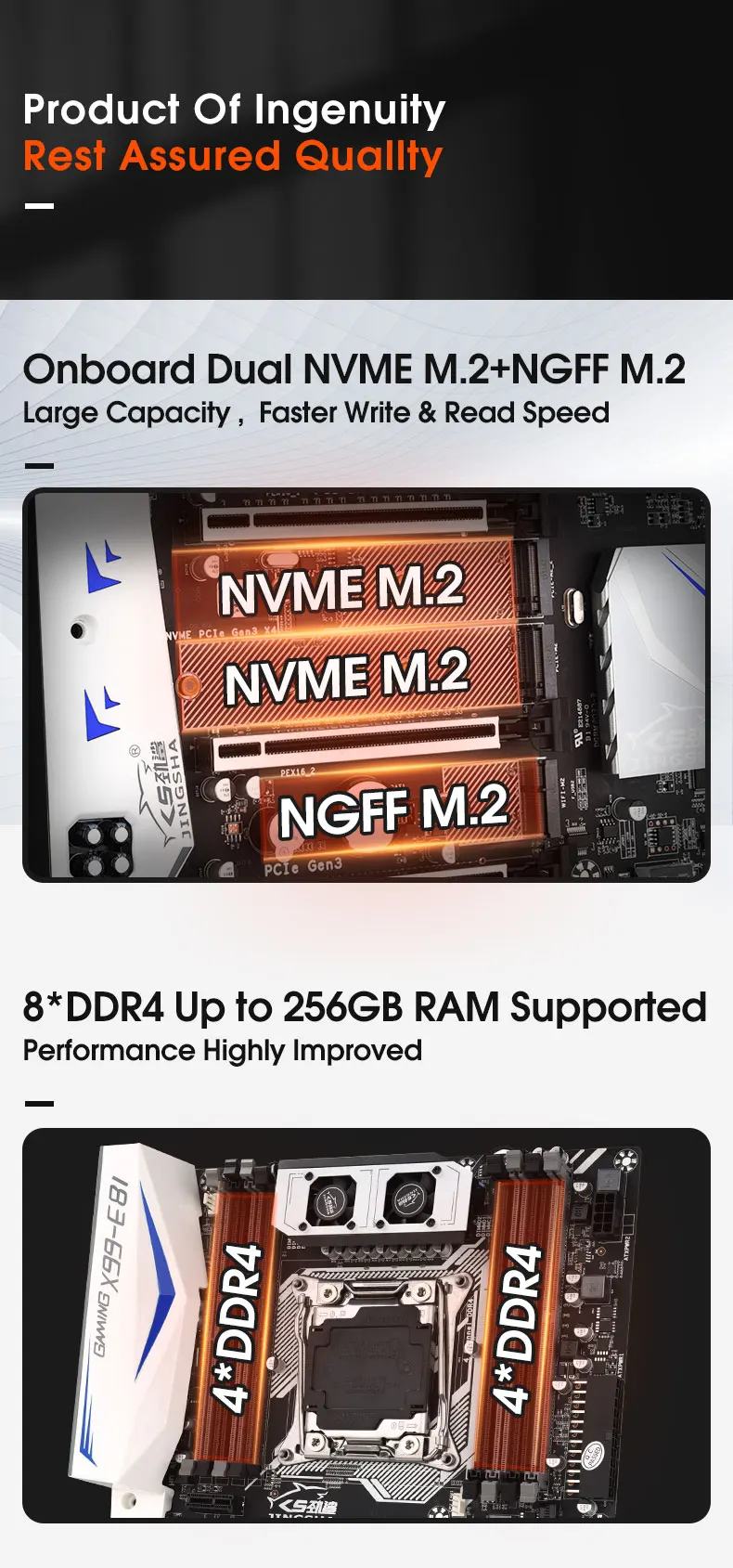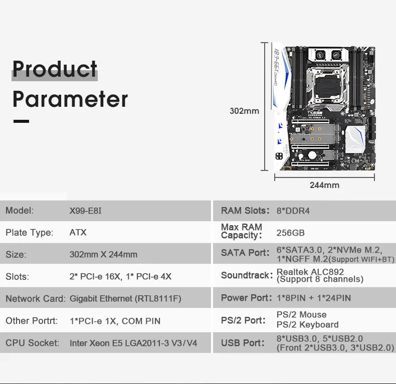 Наш комплект материнской платы включает материнскую плату, 1 * CPU и 4*32G RECC Ram,NVME 512GB M.2,M.2 WIFI, кулер