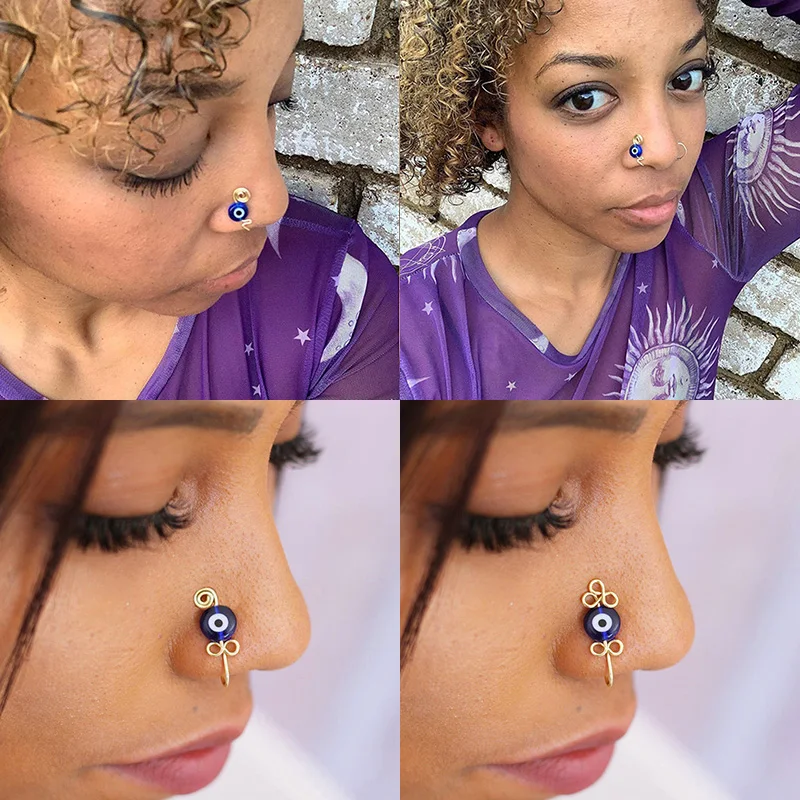 Отзывы о 1pc Turkey Blue Eye Fake Nose Rings for Women Silver Color Stainless Steel African Cuff Non Piercing Body Jewelry Gift - купить по