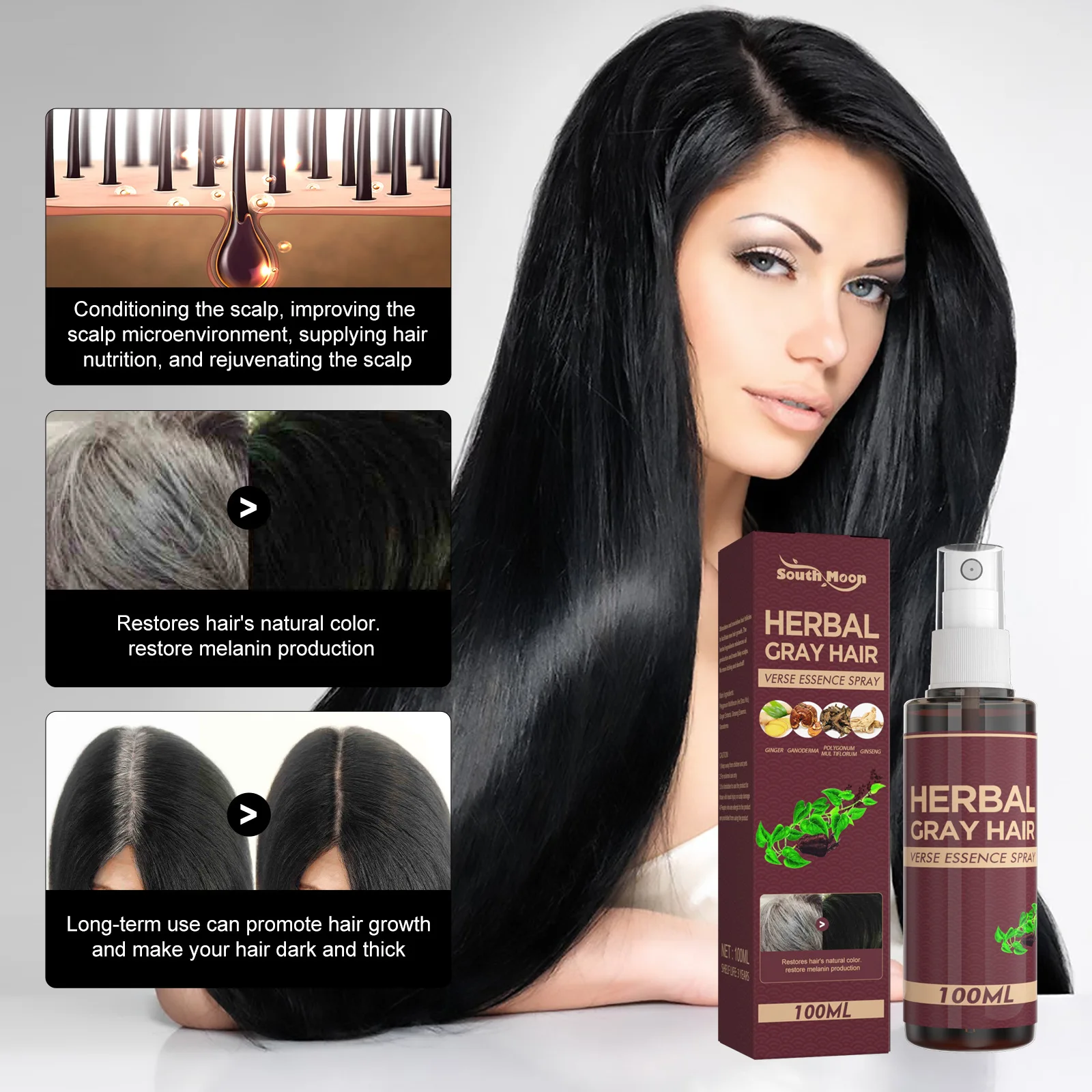 Имбирные волосы для роста черный Восстанавливающий спрей сыворотка лечение седых волос против выпадения волос белые волосы сухие вьющиеся поврежденные волосы продукт для роста