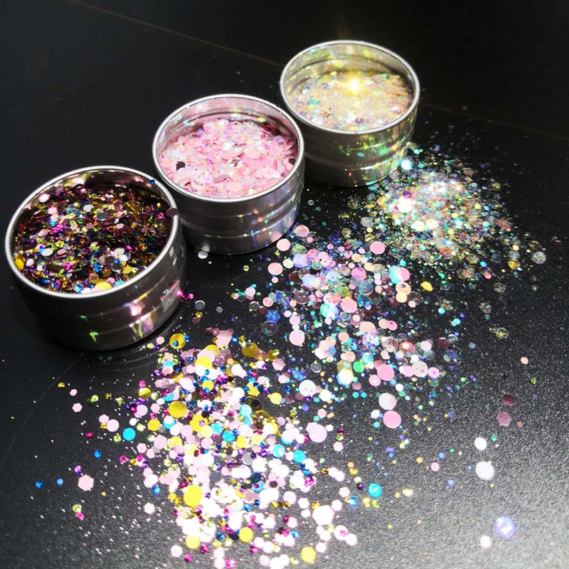 1Pot японский нейл-арта украшения фантастический Радужный Блеск шестиугольная разноцветные круглые Блестки яркие make up/тела/Нейл-Золотой блеск