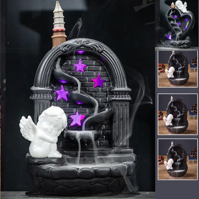 Керамические куриные конфорки для благовоний с светодиодный светильник Фонтан дыма водопад Ангел держатель ароматерапия домашний декор дзен