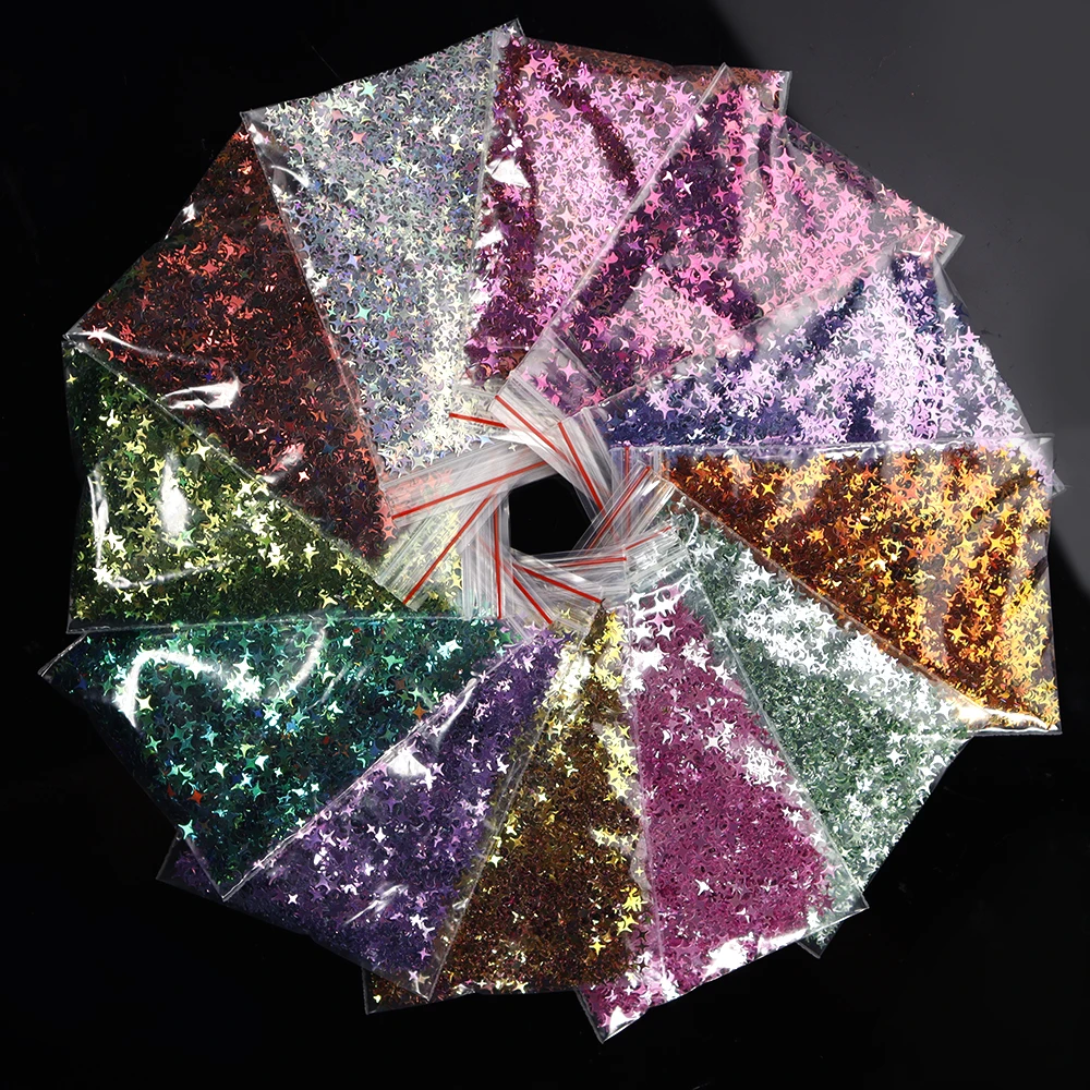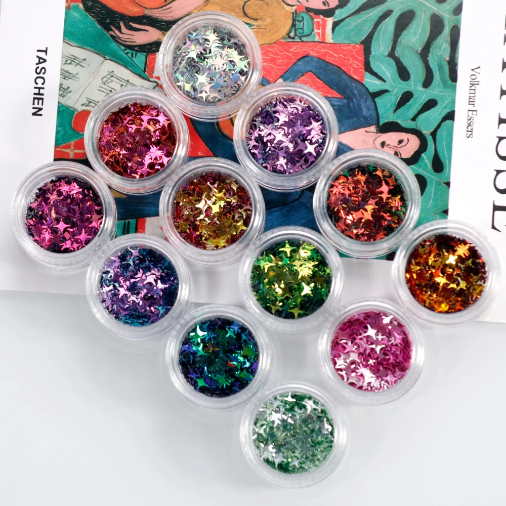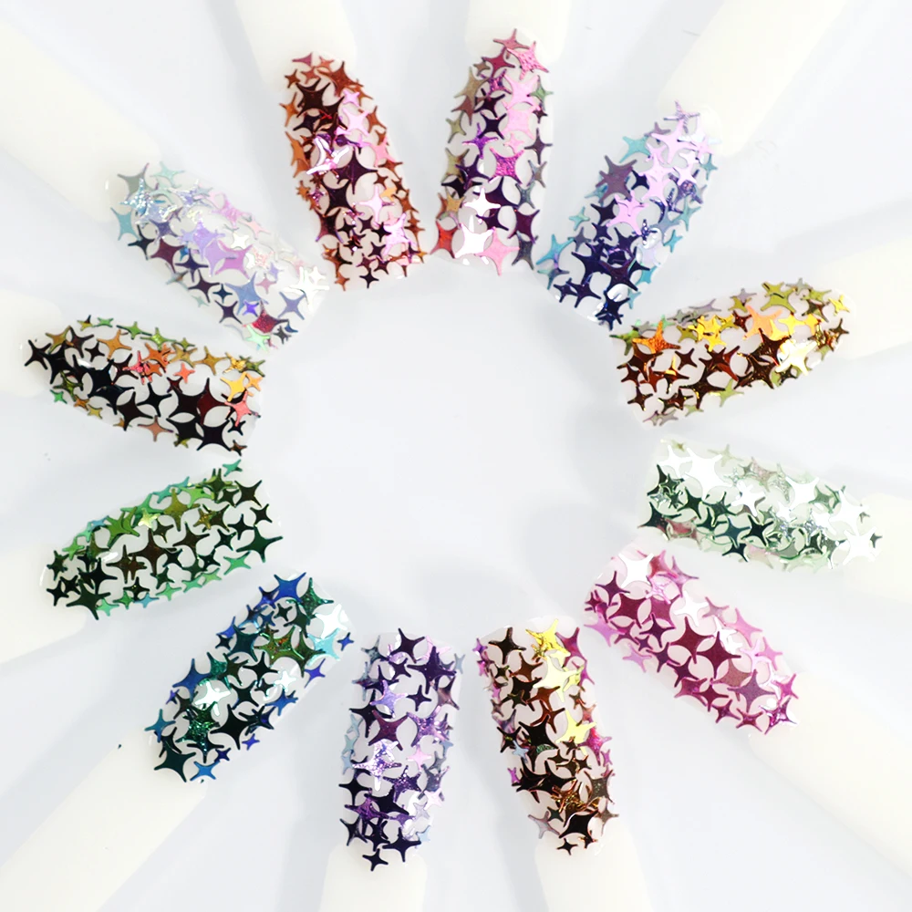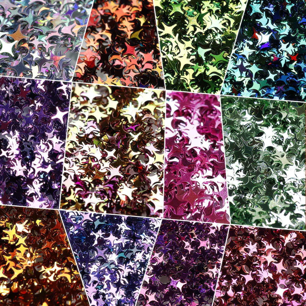 Отзывы о 10g Four-pointed Star Flake 3D Glitter Sequins Powder 2/4/5mm Chameleon Starflake Nail Art Holo Acrylic Stars Loose Sequin PD120 - купить по