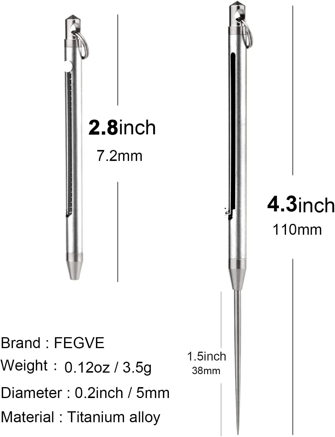 2. Легкий и портативный: портативная титановая зубочистка имеет кольцо для ключей, вы можете носить его с собой, висит на брелке, не добавит никакого веса. Это легкое туристическое снаряжение идеально подходит для альпинизма, кемпинга, походов и путешествий.