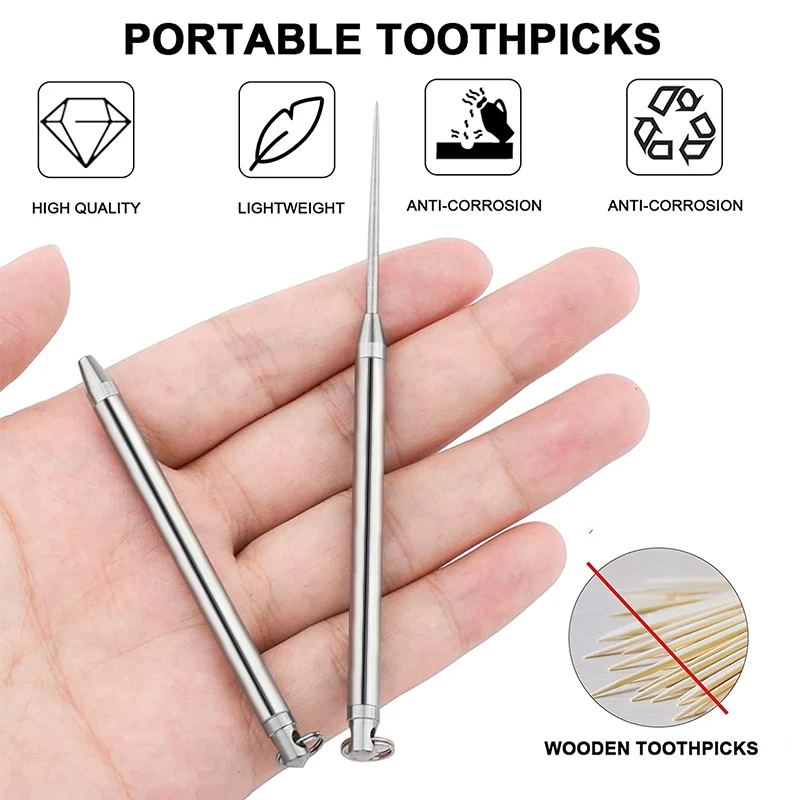 3. Высококачественный материал: Футляр для зубочисток изготовлен из высококачественного титанового сплава, который обладает отличной долговечностью и коррозионной стойкостью. Нетоксичный и многоразовый. Гладкая полировка. Даже при многократном использовании, эти зубочистки будут держать вас в чистоте достаточно, чтобы вытащить вас из двери снова. Безопасный и надежный.