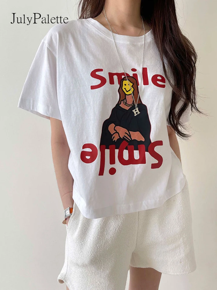 Отзывы о Футболка женская с круглым вырезом модный Свободный пуловер мультяшным принтом