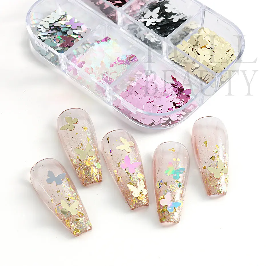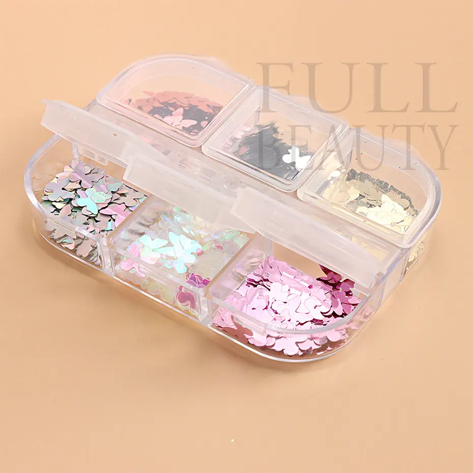 6 Grids Butterfly Nails Sequins Summer Spangles