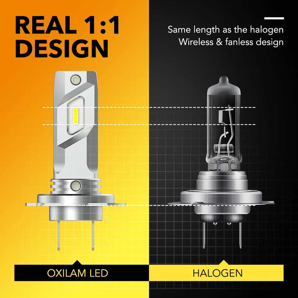 3. 1: дизайн 1 размера с галогенной лампой, светодиодная лампа Oxilam использует в качестве галогенного луча 1:1 и ультратонкой медной пластины с чипом, чтобы обеспечить идеальную диаграмму луча и не закрывать глаза на встречные автомобили и водителей. Подходит для 99% автомобилей.
