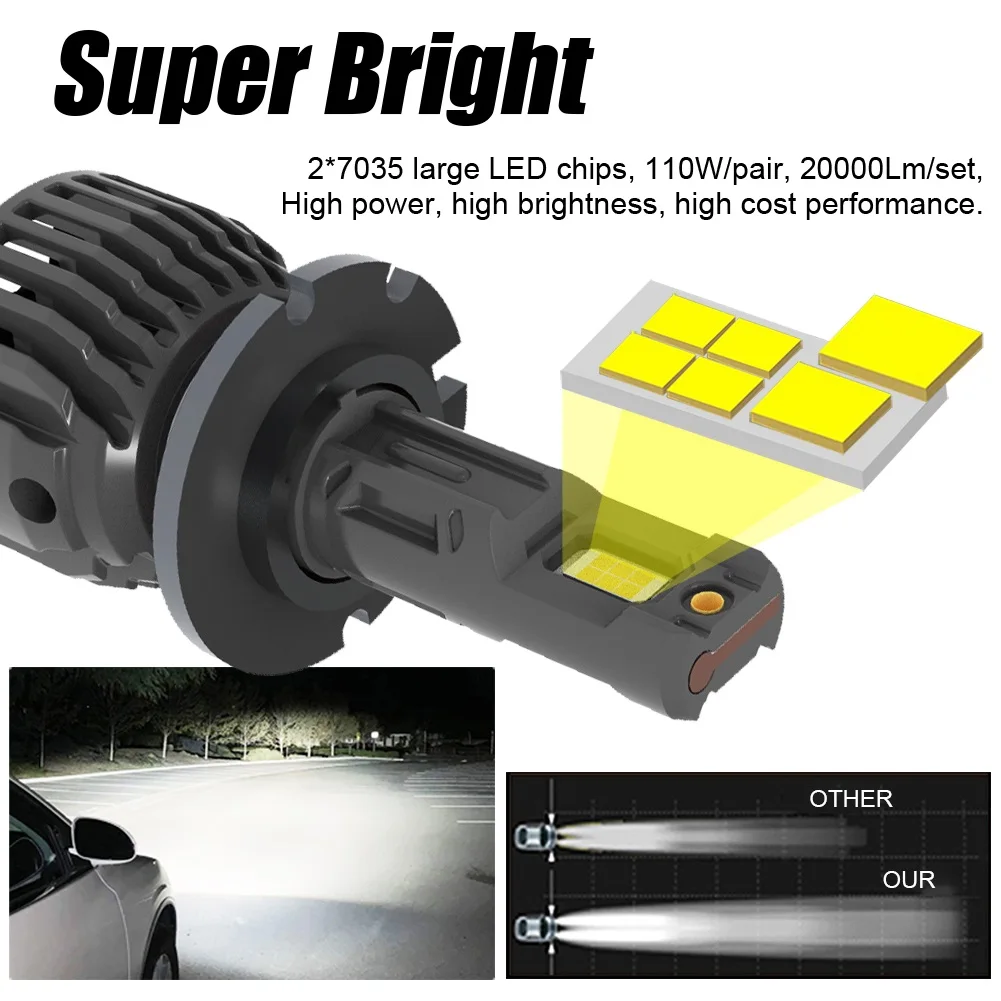 Отзывы о Светодиодные автомобильные фары D2H CSP 3570 GXP Chips 20000Lm 110W Термальная медная трубка 6500K