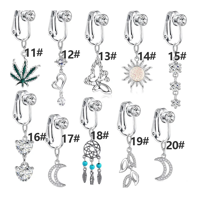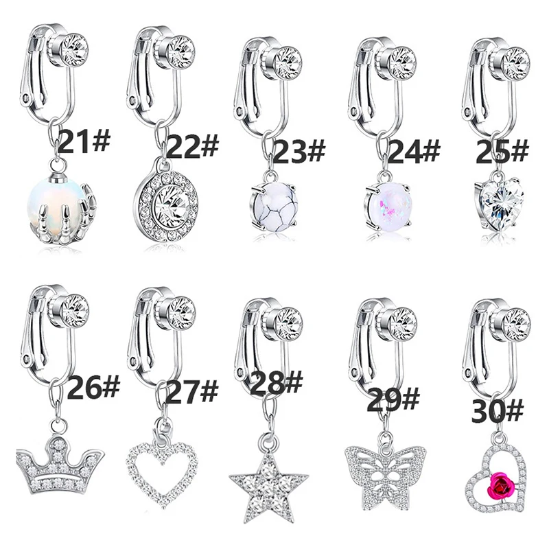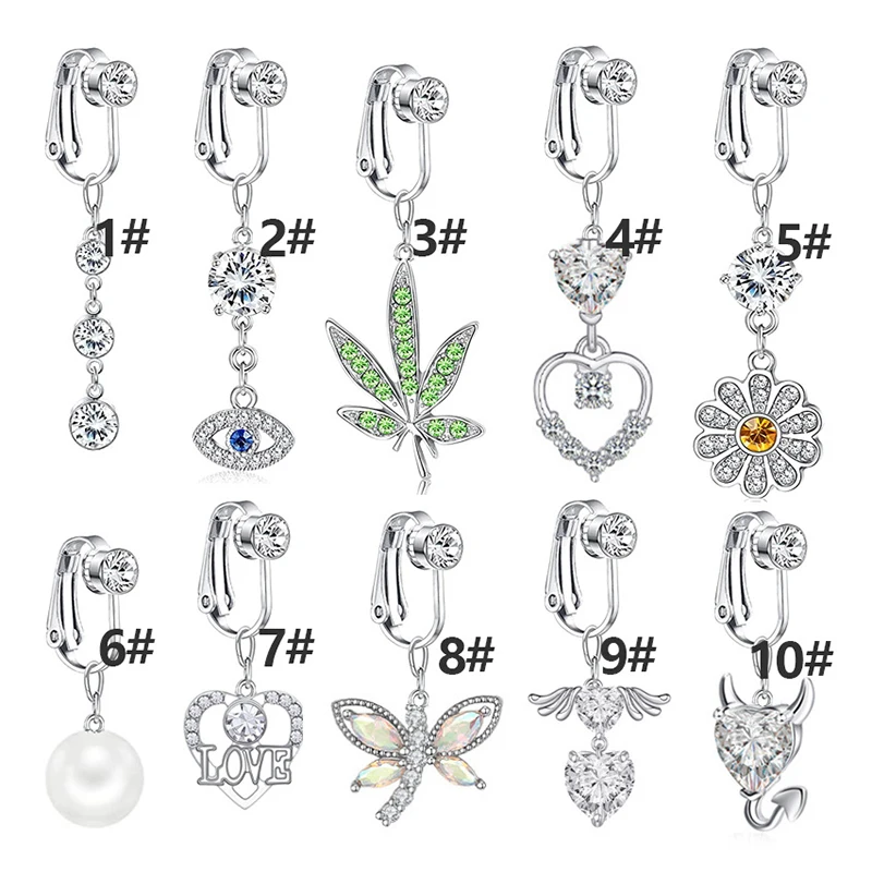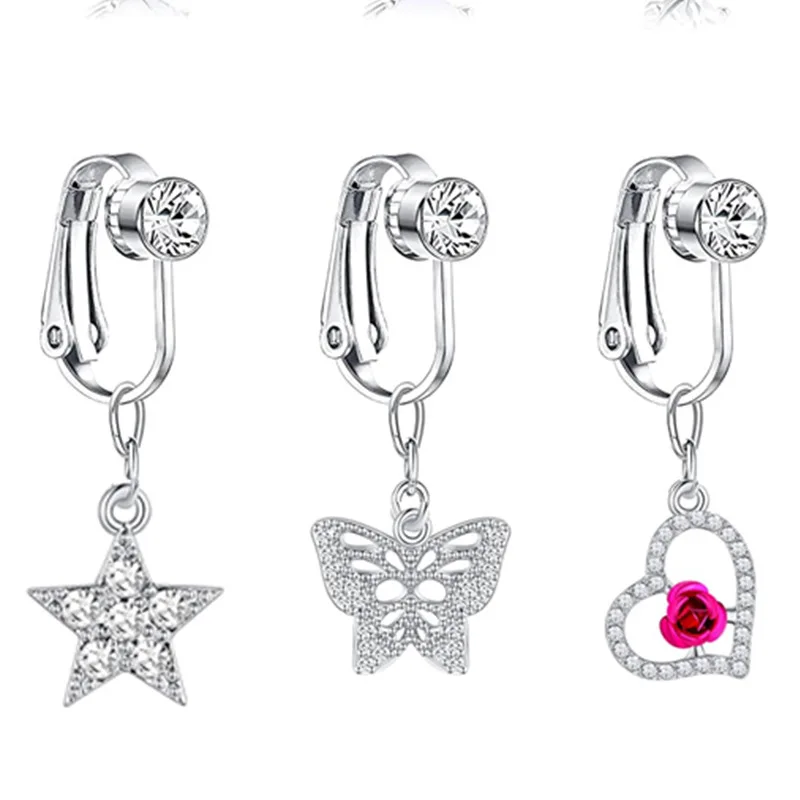 1 шт., Бабочка, сердце, лиса, болтаются, клипсы на пупок, кольца, Поддельные кольца для живота, свисающие пупка, кольца для женщин, CZ, не пирсинг, ювелирные изделия