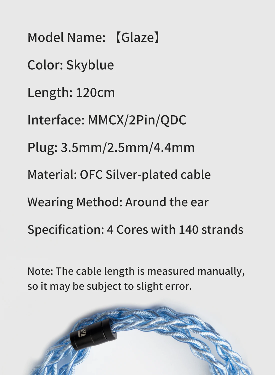 KBEAR Glaze 4 Core High Purity OFC Silver-plated Cable For Shure SE846 SE215 MMCX/2PIN/QDC Connector In ear Monitor Earphone
