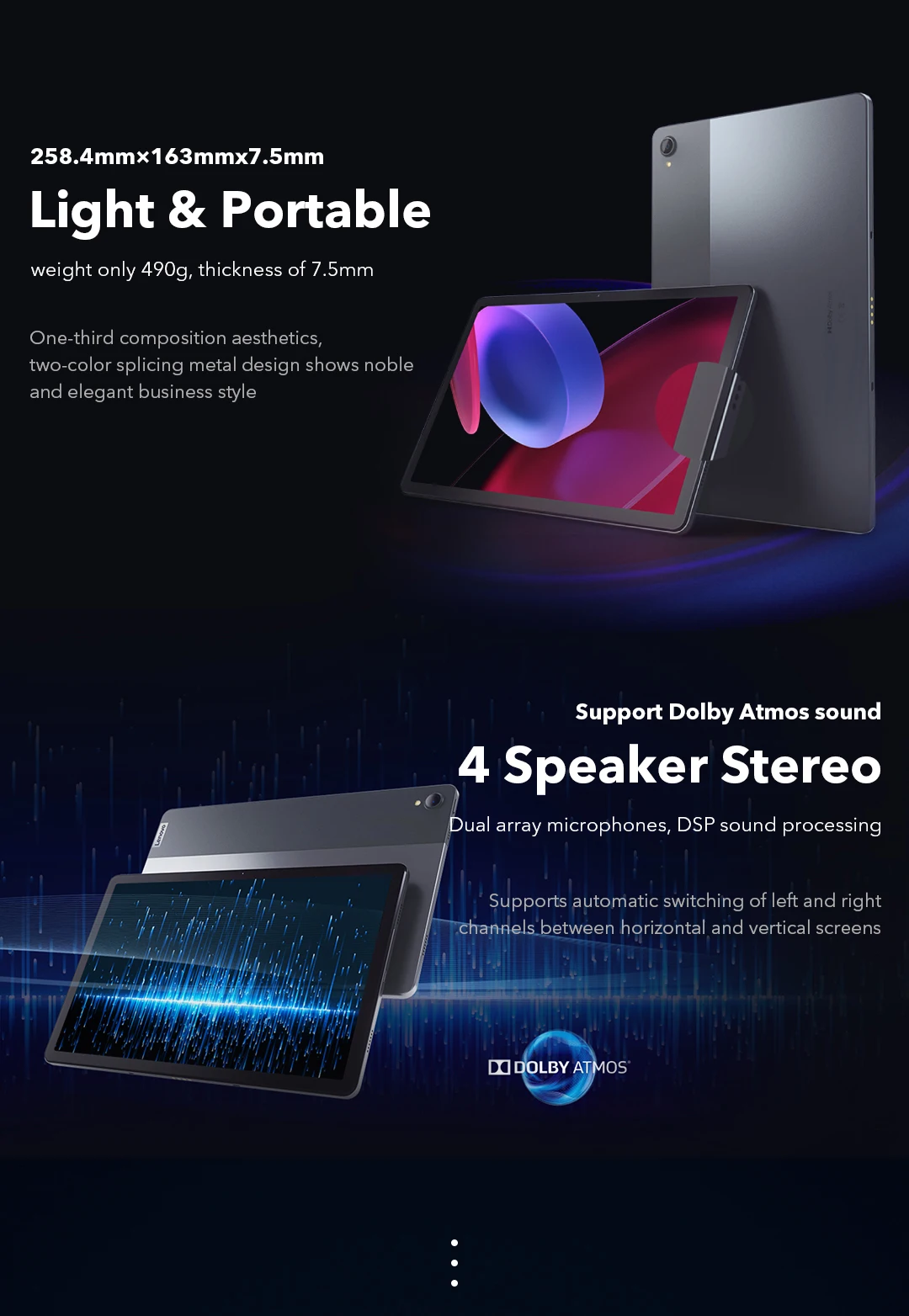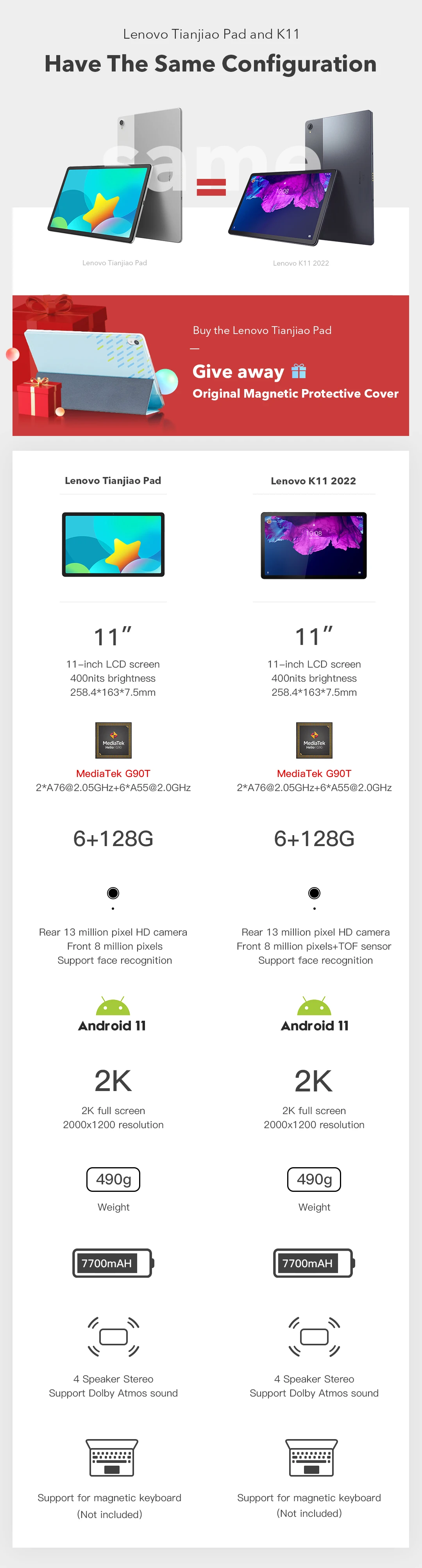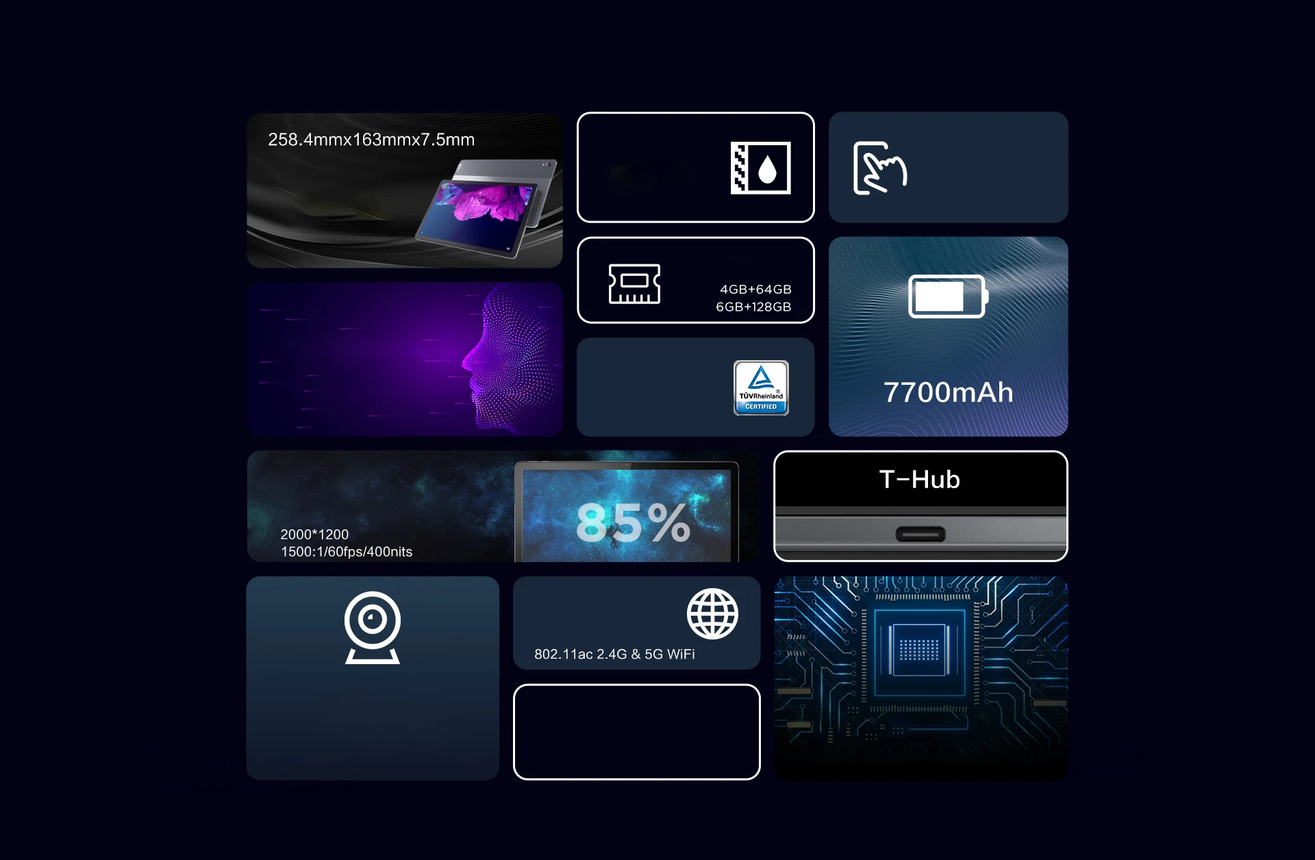 258,4 мм * 164 мм * 7,5 мм/продукт светильник и тонкий, подходит для переноски, пыле-и водонепроницаемый, ip52 уровня из водонепроницаемого материала можно подключить стилус и внешнюю клавиатуру (приобретать отдельно), распознавание лиц, большая емкость 7700 мАч, сертификация на низкий синий светильник, защита глаз 11 дюймов, 2K экран MTK g90t Восьмиядерный чип