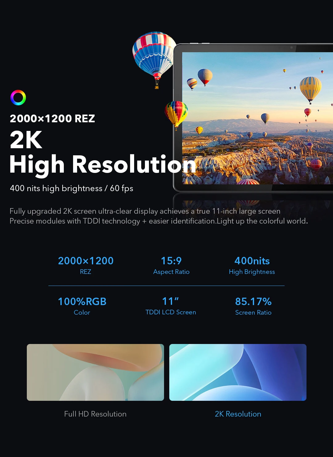 2K экран, 11 дюймов, 85% экрана