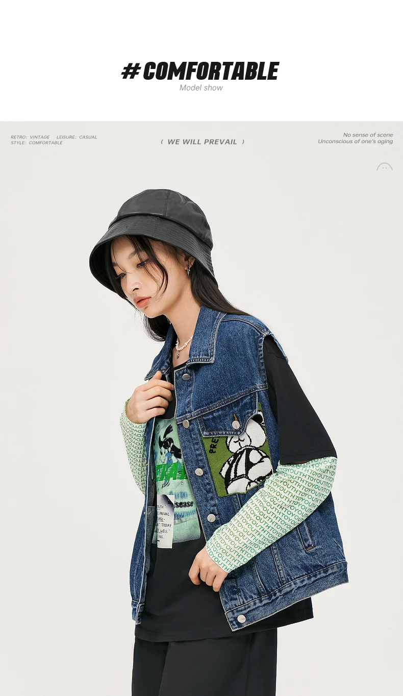 Отзывы о Женская джинсовая куртка-жилет без рукавов с принтом в виде медведя - купить по