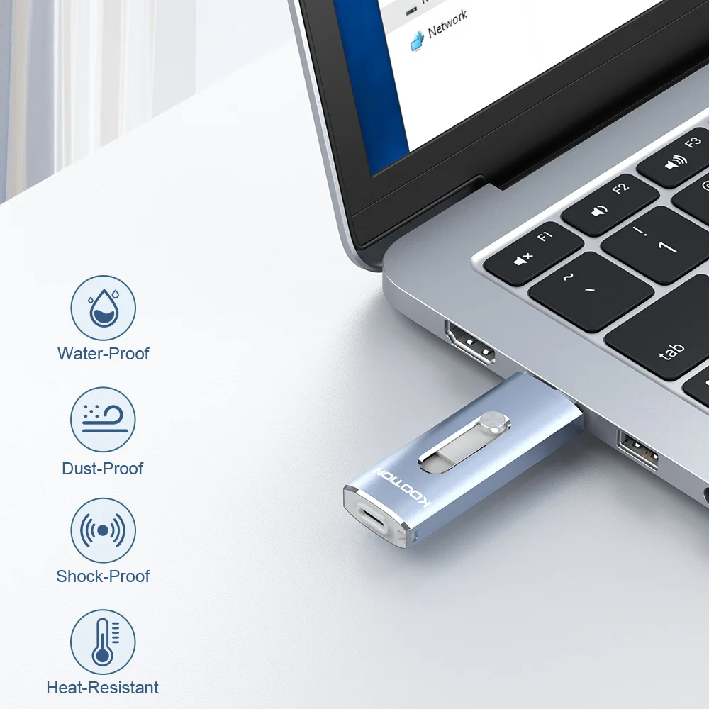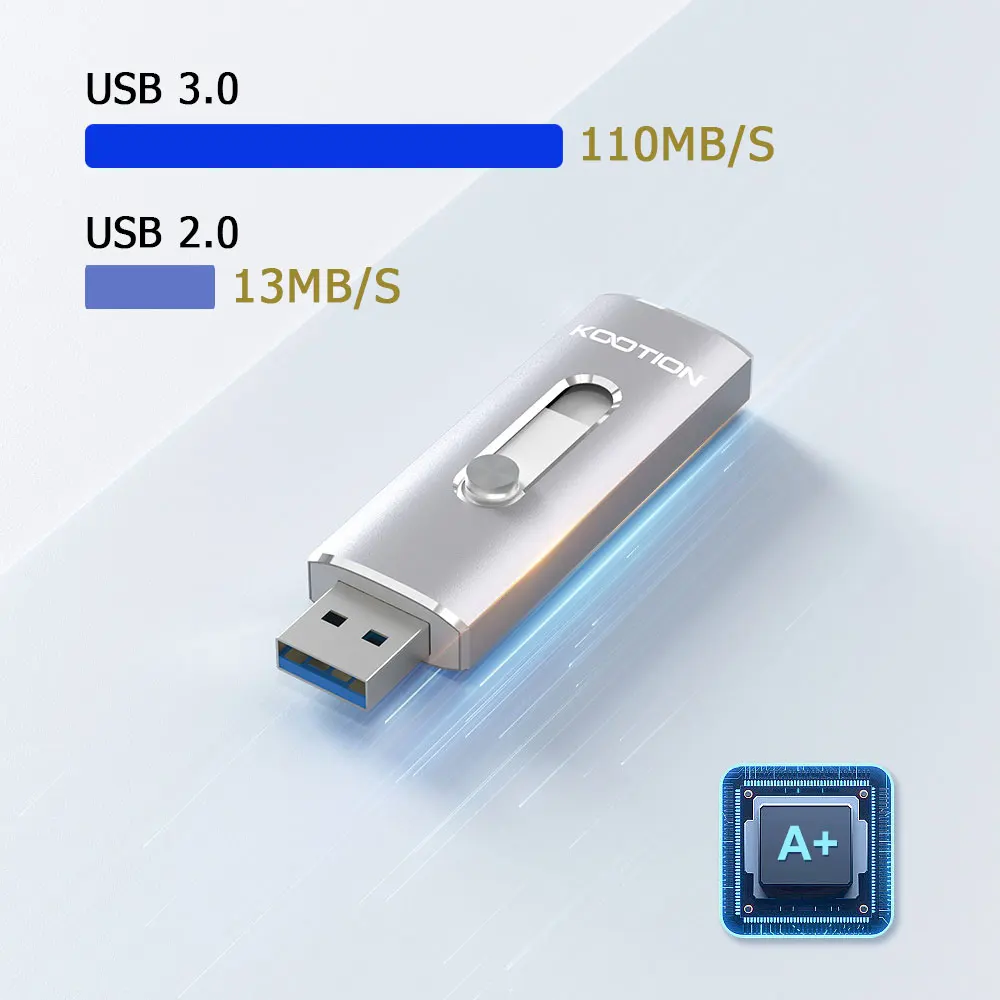 С Международной стандартной технологией хранения Kootion ударопрочный, водонепроницаемый, термостойкий (рабочий диапазон между 0 ° C и 60 ° C и диапазон хранения между-20 ° C и 85 ° C.), защита от рентгеновского излучения и магнитного излучения, Kootion флеш-накопитель USB 3,0 постоянно защищает ваши личные данные и эффективно предотвращает их потерю.