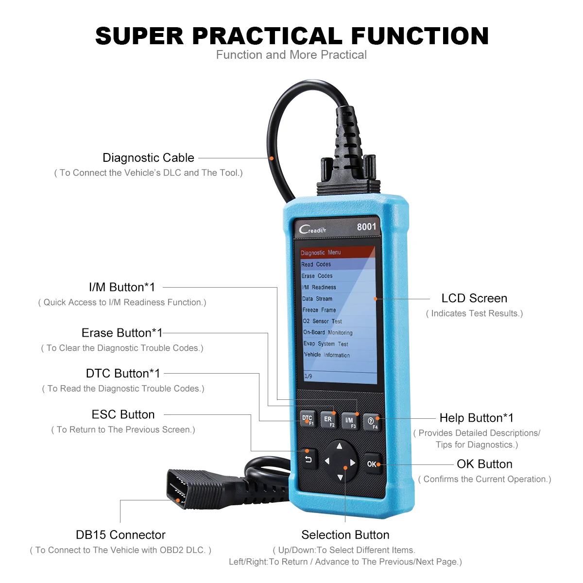 Отзывы о Диагностический сканер Launch Creader 8001 OBD2 Автомобильный ABS SRS для диагностики