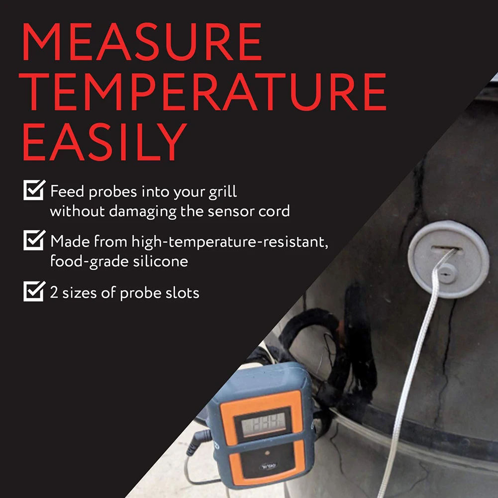 * Измерение температуры легко: наш термометр и порт зонда позволяют легко питать зонды в ваш гриль Без дробления или повреждения сенсорного шнура под крышкой. Маленькое круглое отверстие идеально подходит для небольших зондов, а большой слот-порт отлично подходит для больших или двойных зондов