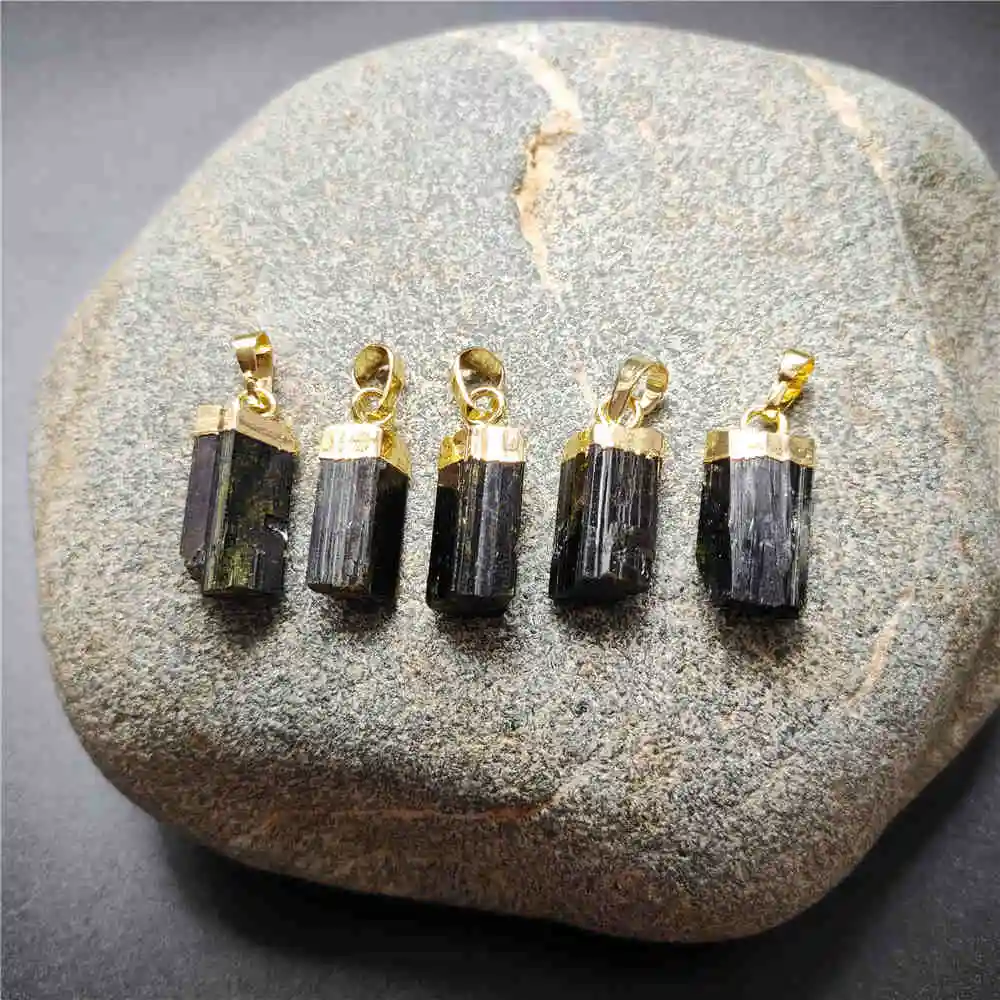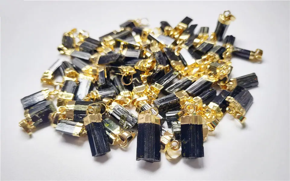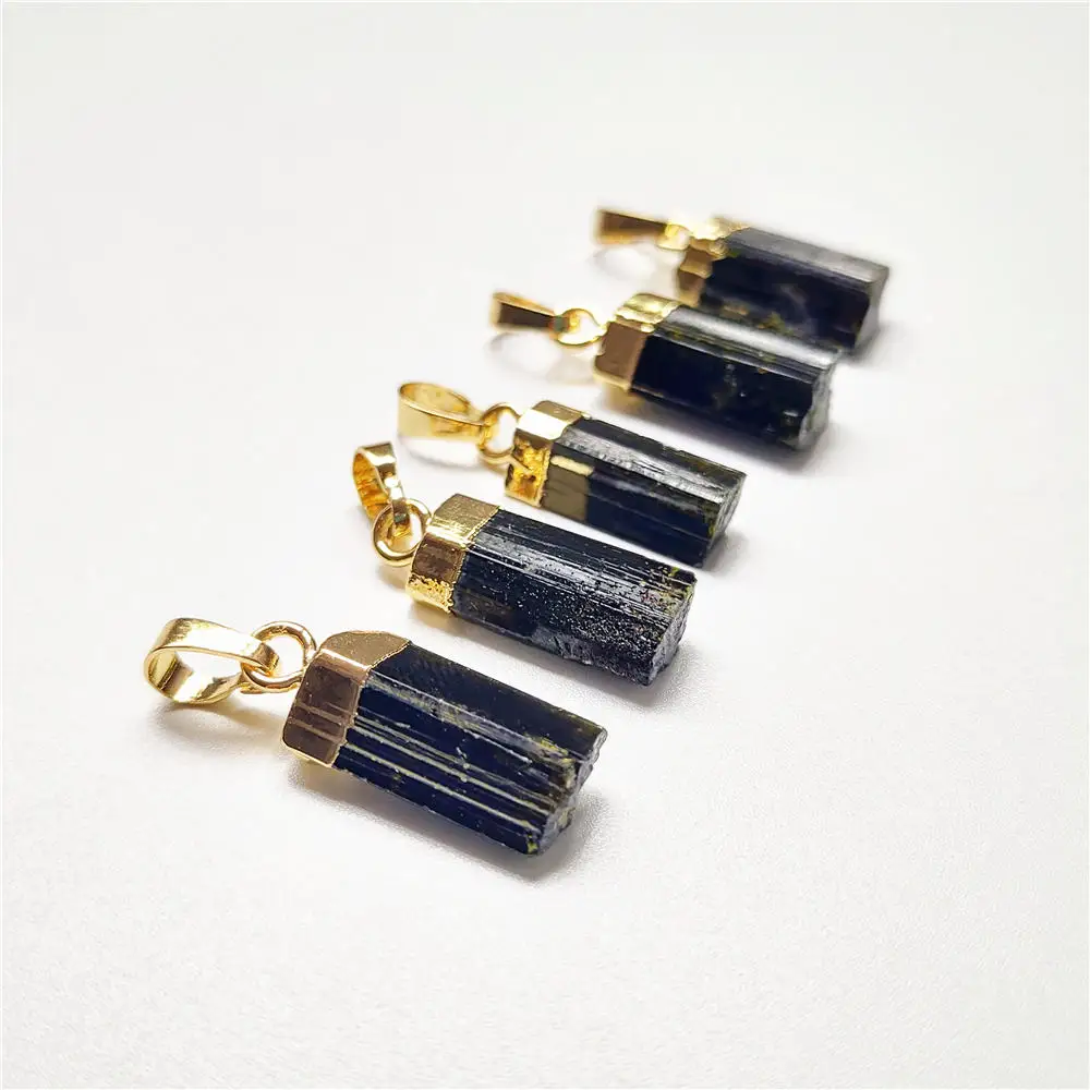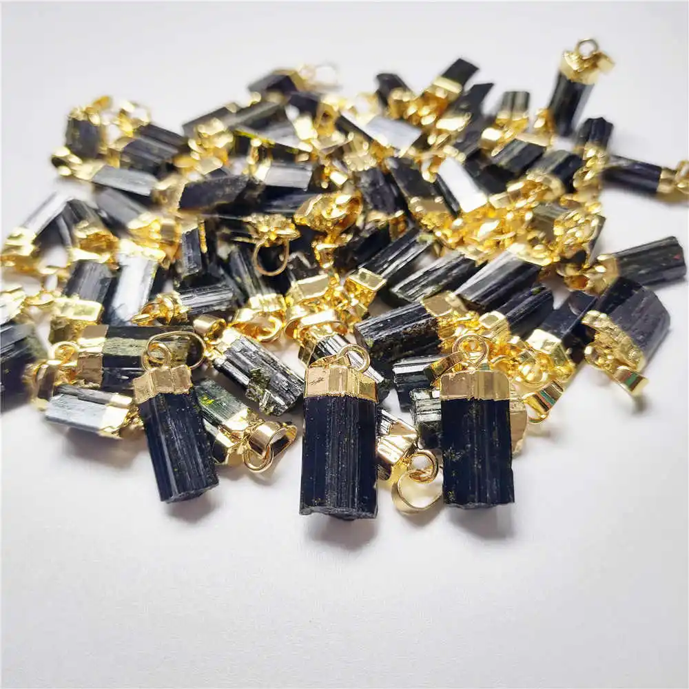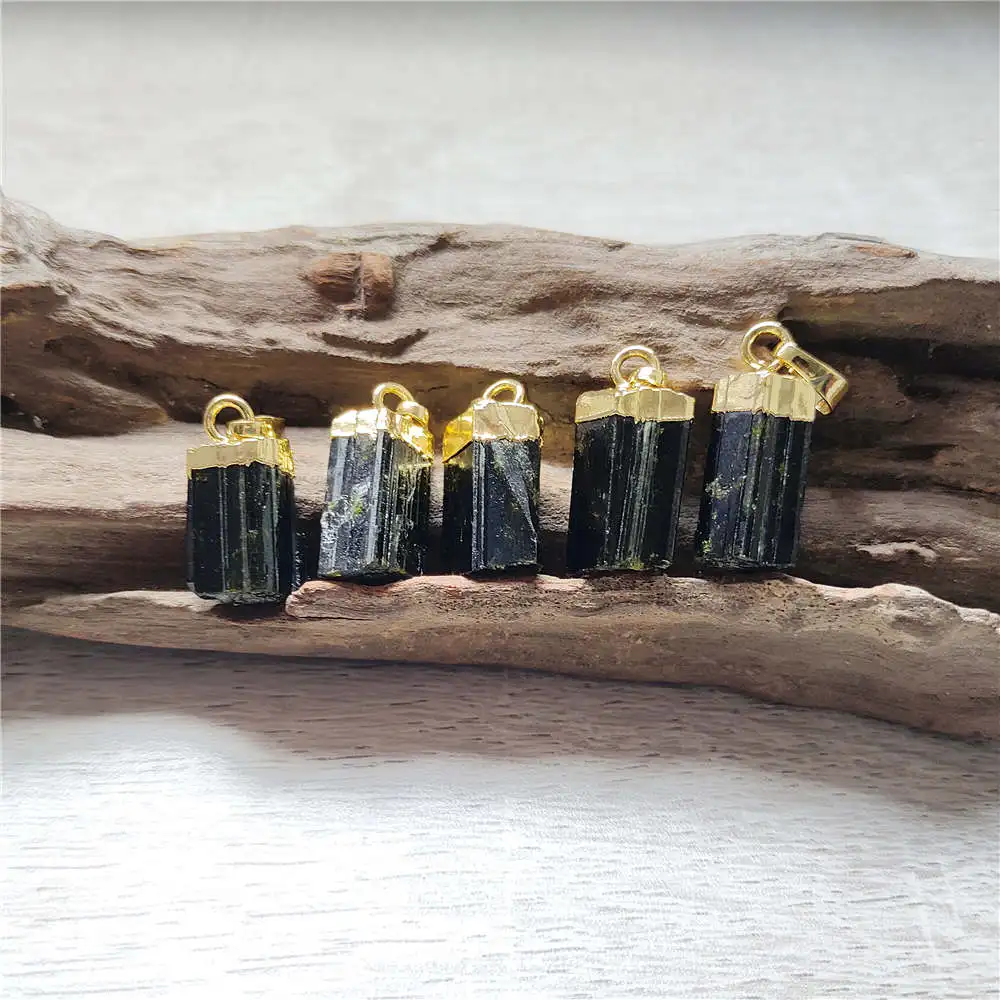 FUWO натуральный зеленый и черный турмалиновый кулон, позолоченные драгоценные камни камень аксессуары для изготовления ювелирных изделий PD410 5 шт./лот