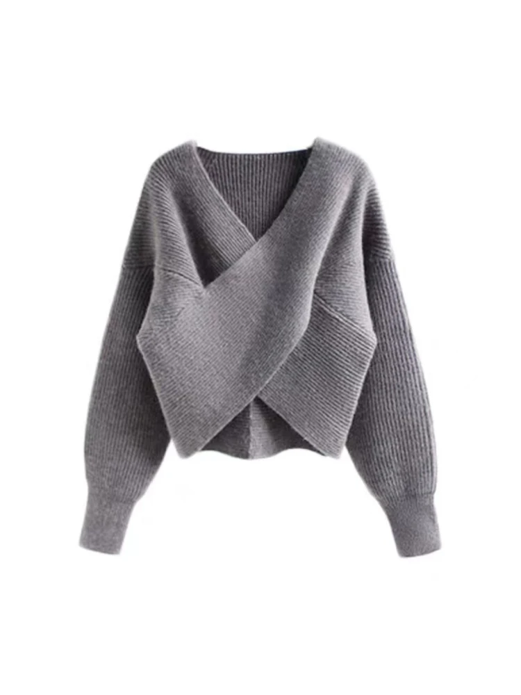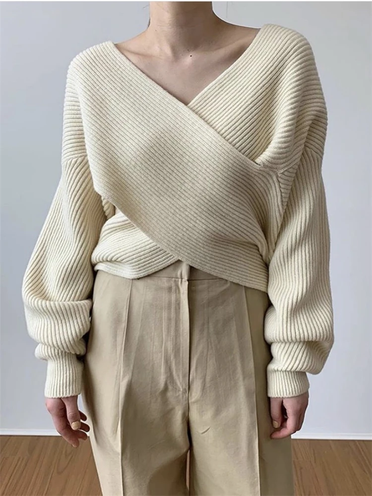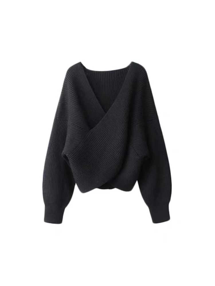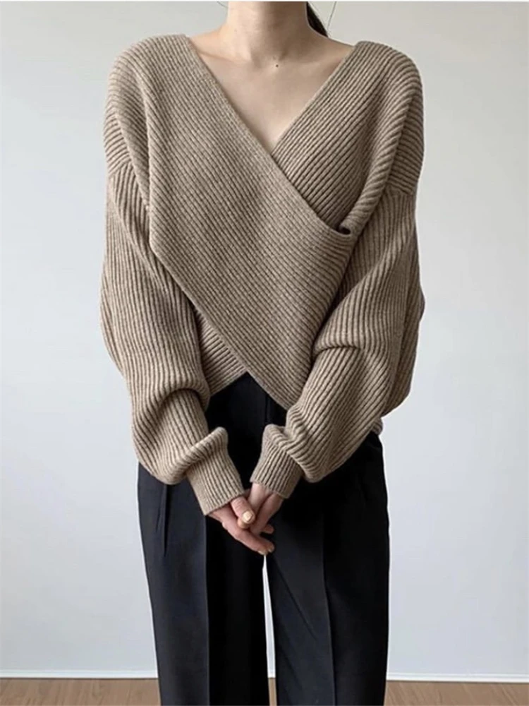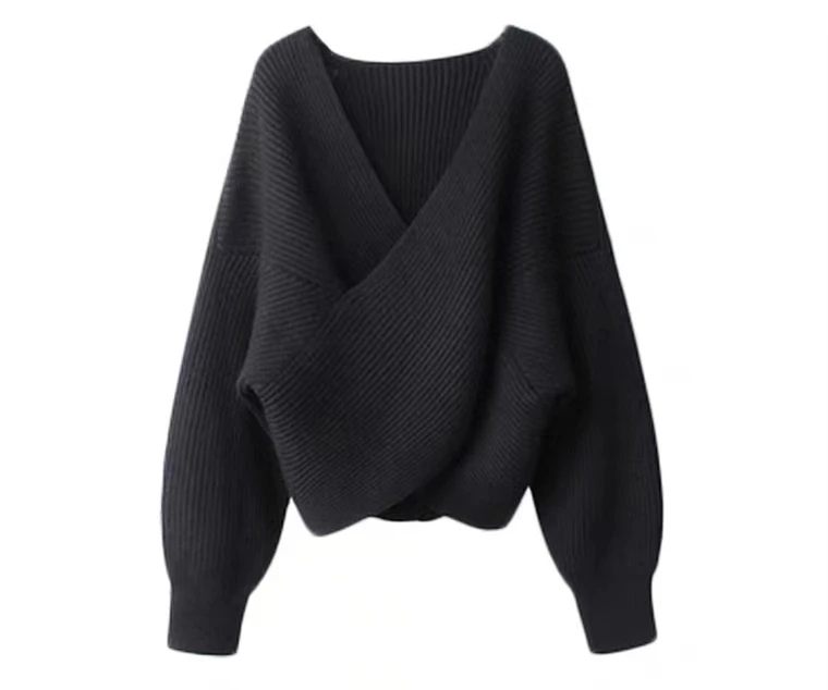 Отзывы о Свитер Женский вязаный однотонный с V-образным вырезом и длинным рукавом - купить