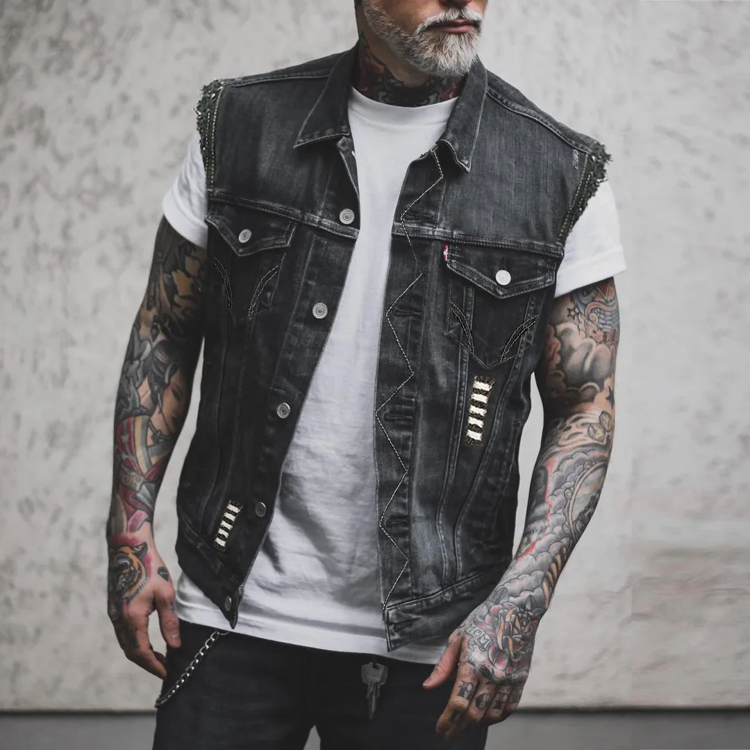 Отзывы о Мужская джинсовая куртка без рукавов уличная трендовая мотоциклетная в стиле
