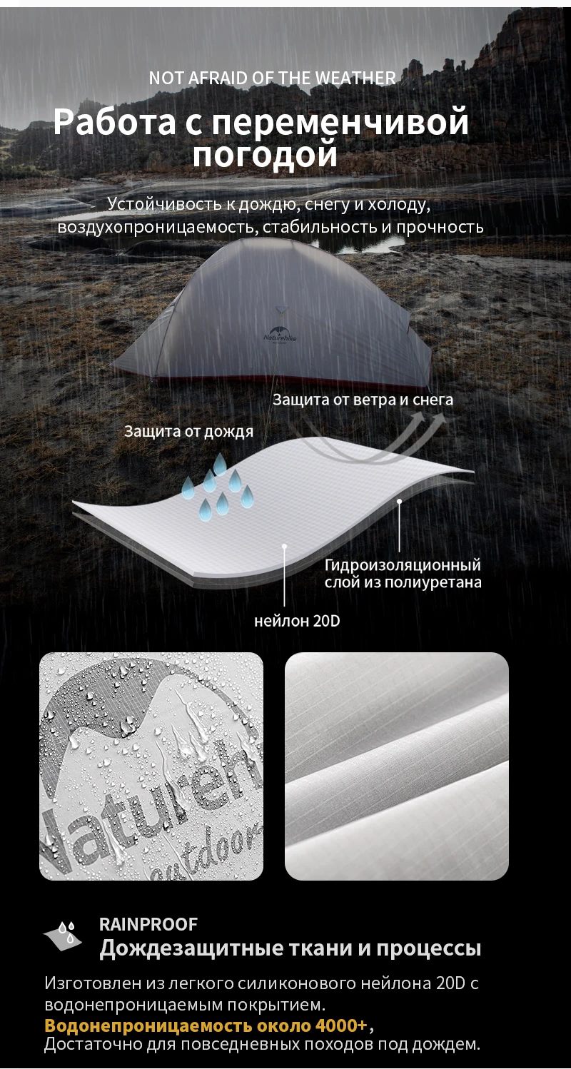 Отзывы о Naturehike Cloud Up Серия палаток Ультралегкая кемпинговая палатка на открытом воздухе 20D