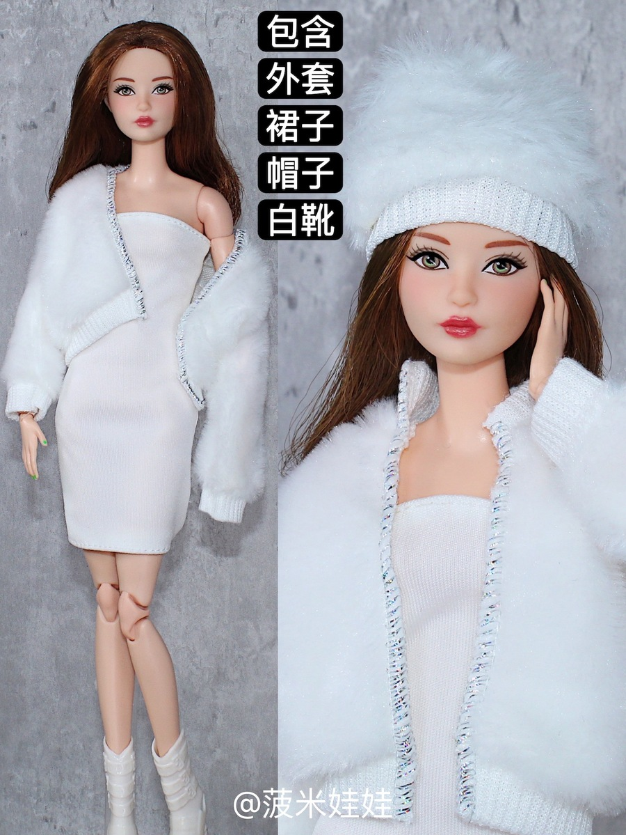 Отзывы о Белое платье + плюшевое пальто шляпа ботинки/30 см кукольная одежда зимняя наряд