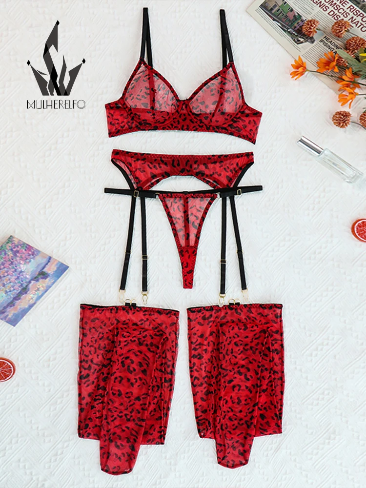 Отзывы о Комплект женского леопардового нижнего белья из 4 предметов с подвязками - купить
