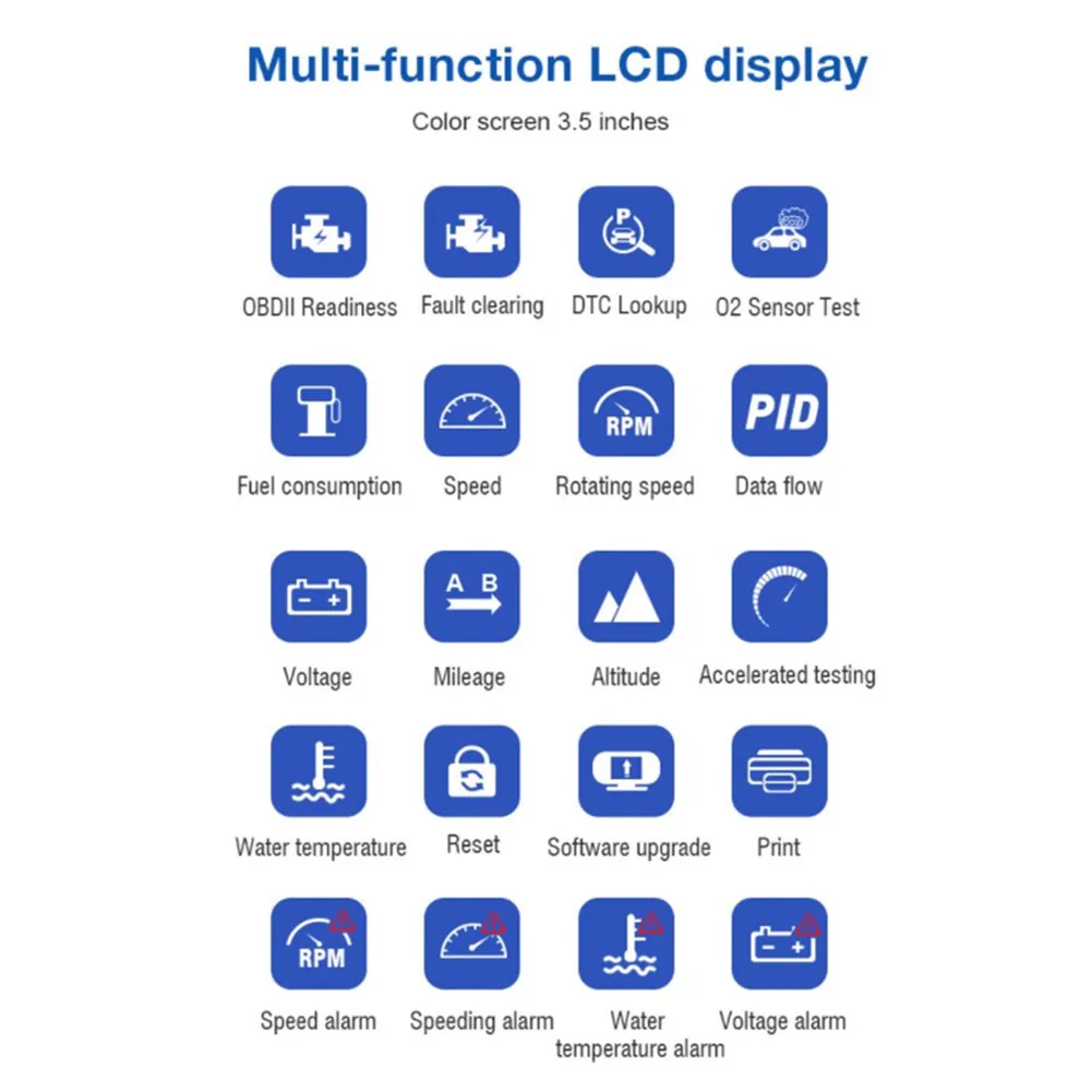 1. Цифровой ЖК-дисплей 3,5 дюйма отображает Параметры транспортного средства в реальном времени, улучшая безопасность вождения, не наклоняя голову.