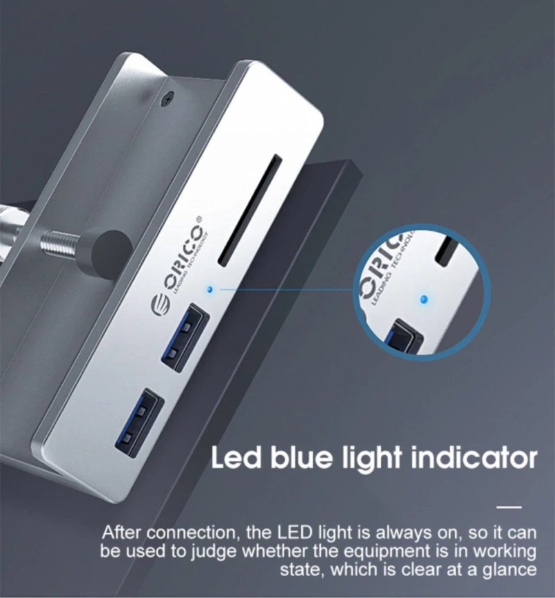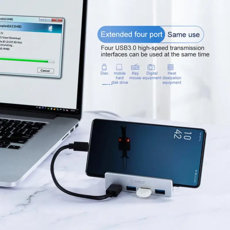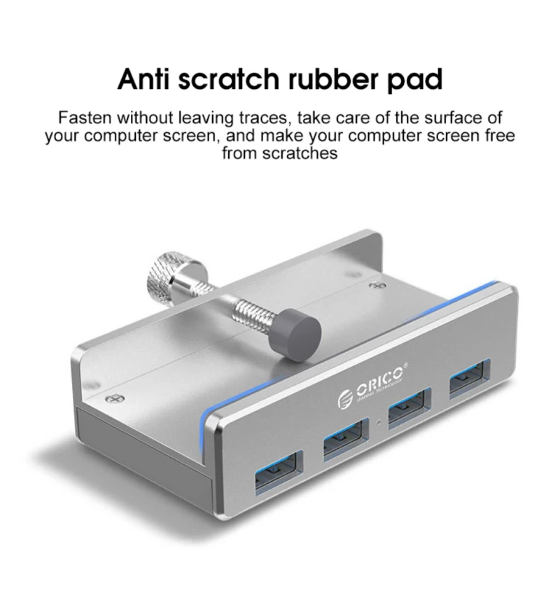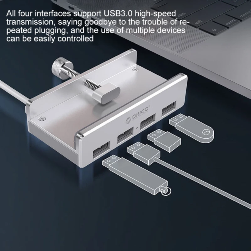 Алюминиевый Концентратор ORICO с 4 портами USB 3,0, внешний адаптер-сплиттер USB3.0 с зажимом для настольного ноутбука, ПК, компьютера, аксессуаров MH4PU-P