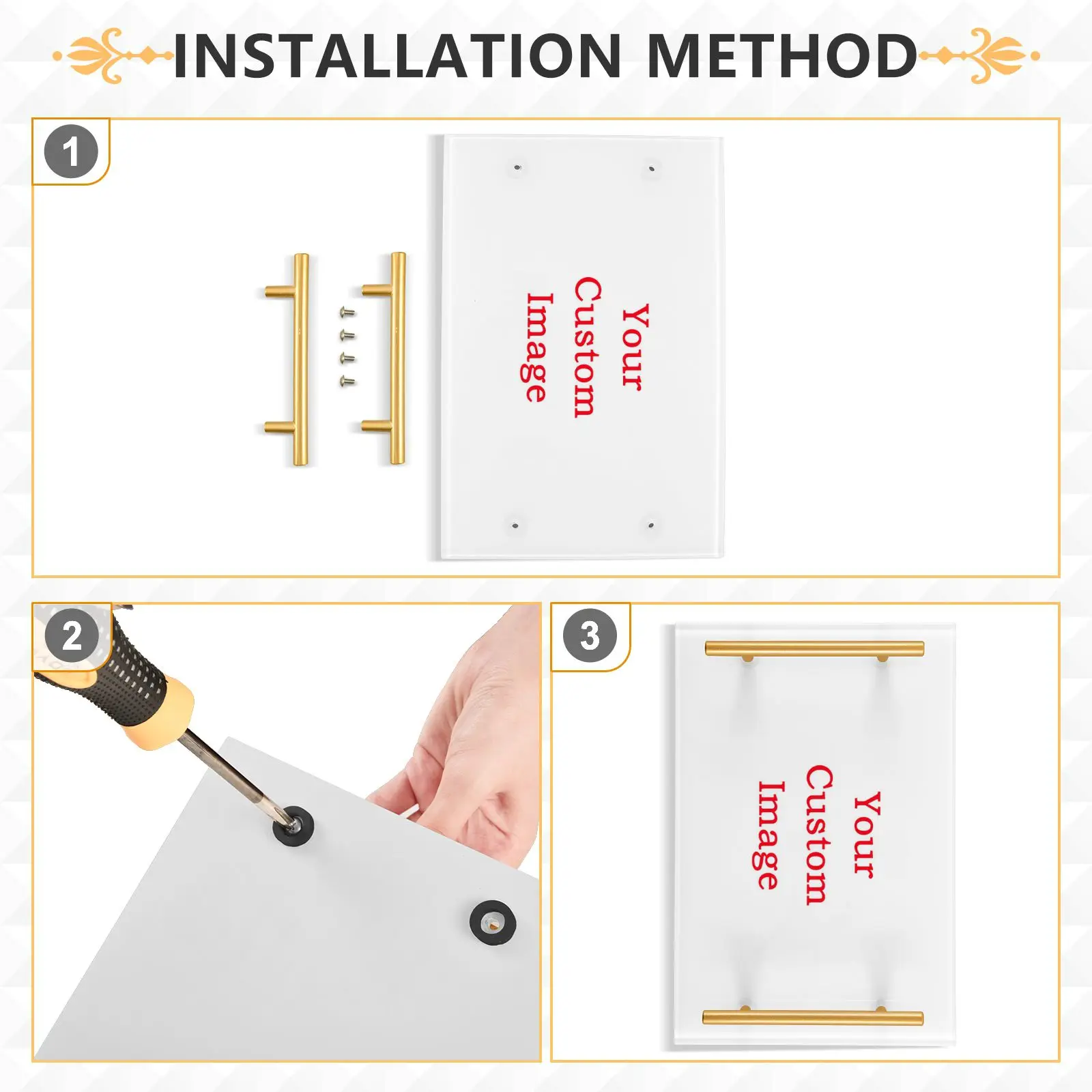 Поднос для хранения на заказ с золотой ручкой для дома, ванной комнаты, раковины, декоративный поднос для гостиной, кухни, витрина для хранения