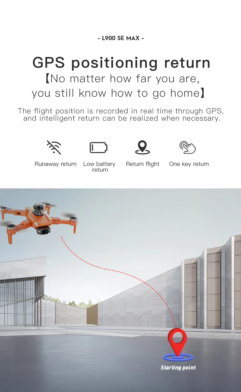 -GPS вспомогательный полет. Предоставляет вам точные детали позиционирования вашего дрона. Дрон автоматически вернется домой точно, когда его батарея Низкая или сигнал слабый, когда вылет из диапазона, никогда не беспокоясь о потере дрона.