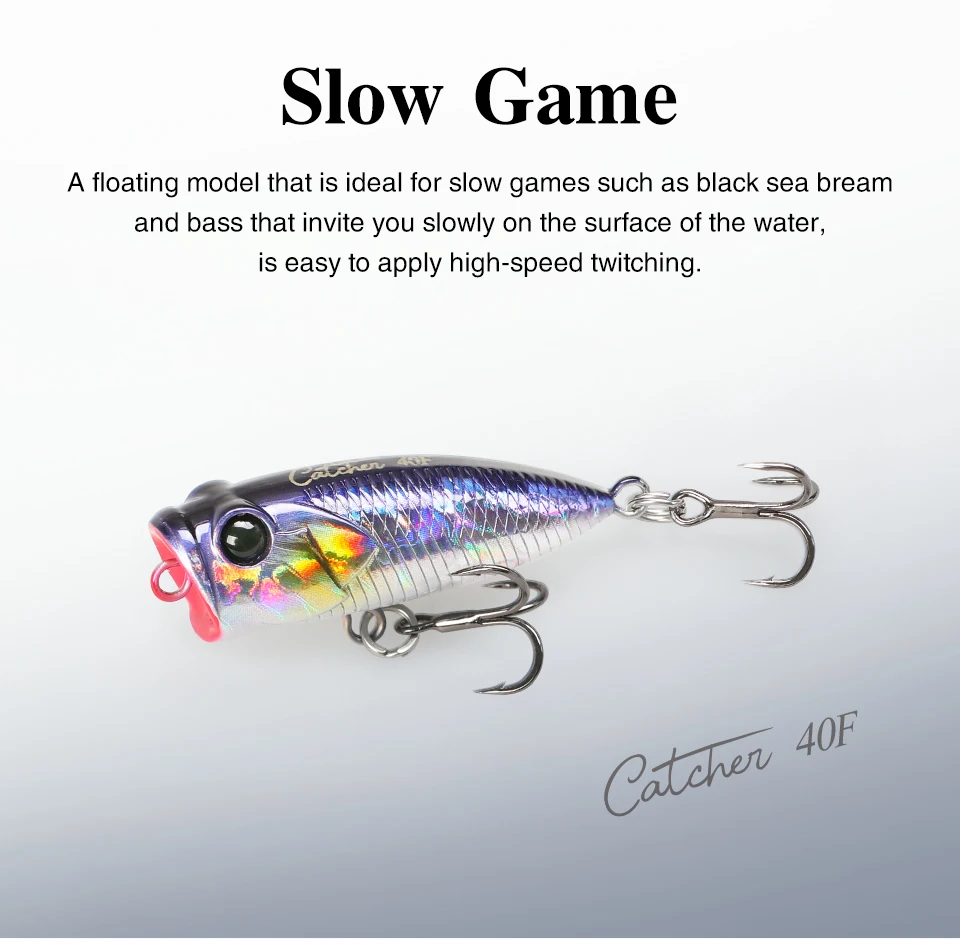 Ловца-это микропоппер с полым корпусом. Во-первых, плавающая модель, которая подходит для более медленного таргетирования басов или морского Bream, которая оснащена выдающейся способностью литья и способна выдерживать высокие скорости подергивания, чтобы нацелиться на маленьких треваллей. Вы можете легко и удобно наслаждаться захватывающей игрой в воду с этими приманками