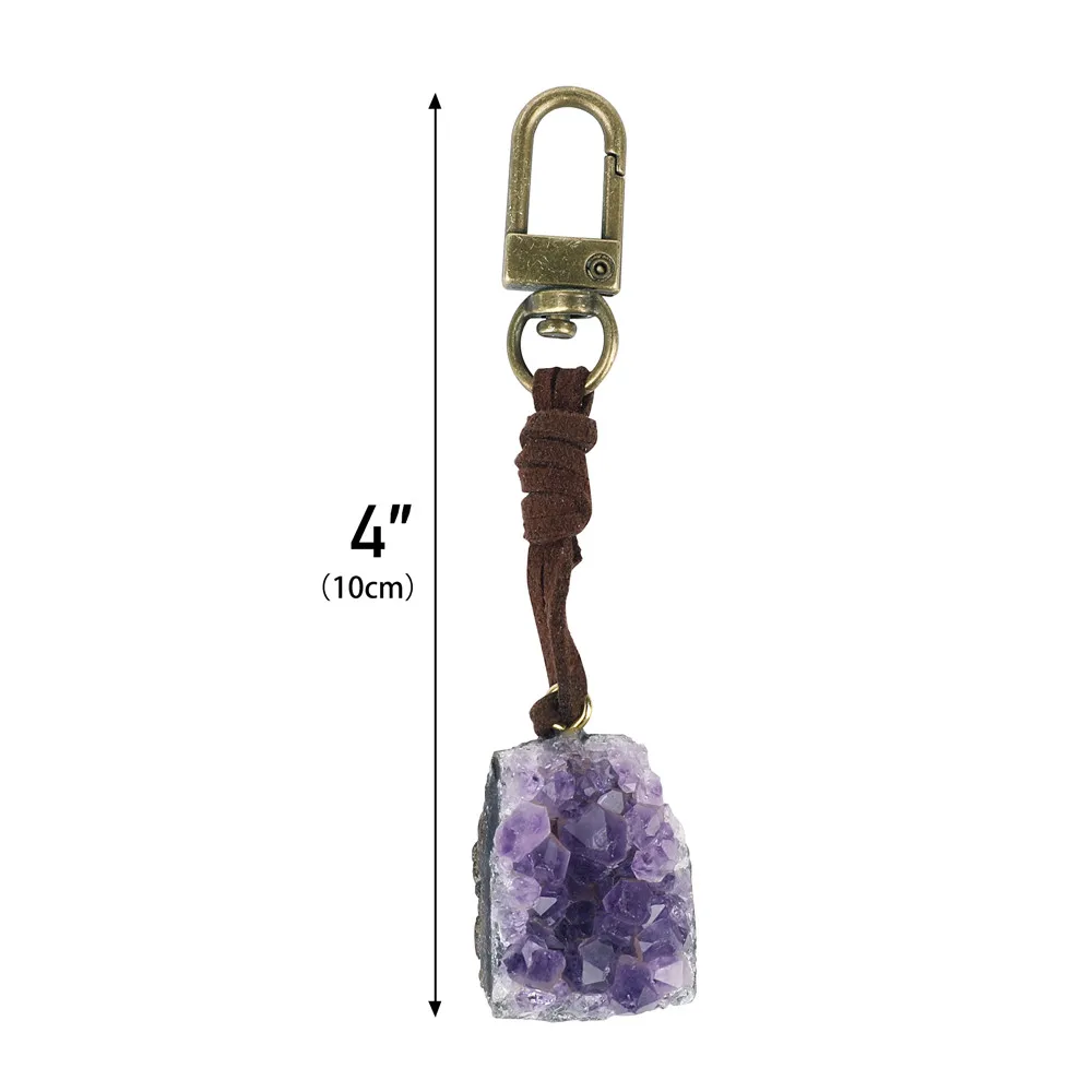 Natural Crystal Raw Mineral Stone Original Keychain Amethyst Pyrite Quartz Geode Keychain Key Ring Car Decor Women Men Gift