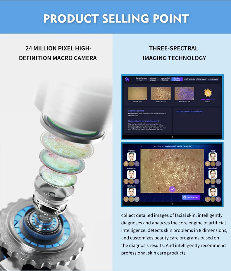 1. Головка обнаружения кожи: 24 миллиона пикселей макро-камера высокой четкости (другая машина всего 10 миллионов пикселей)