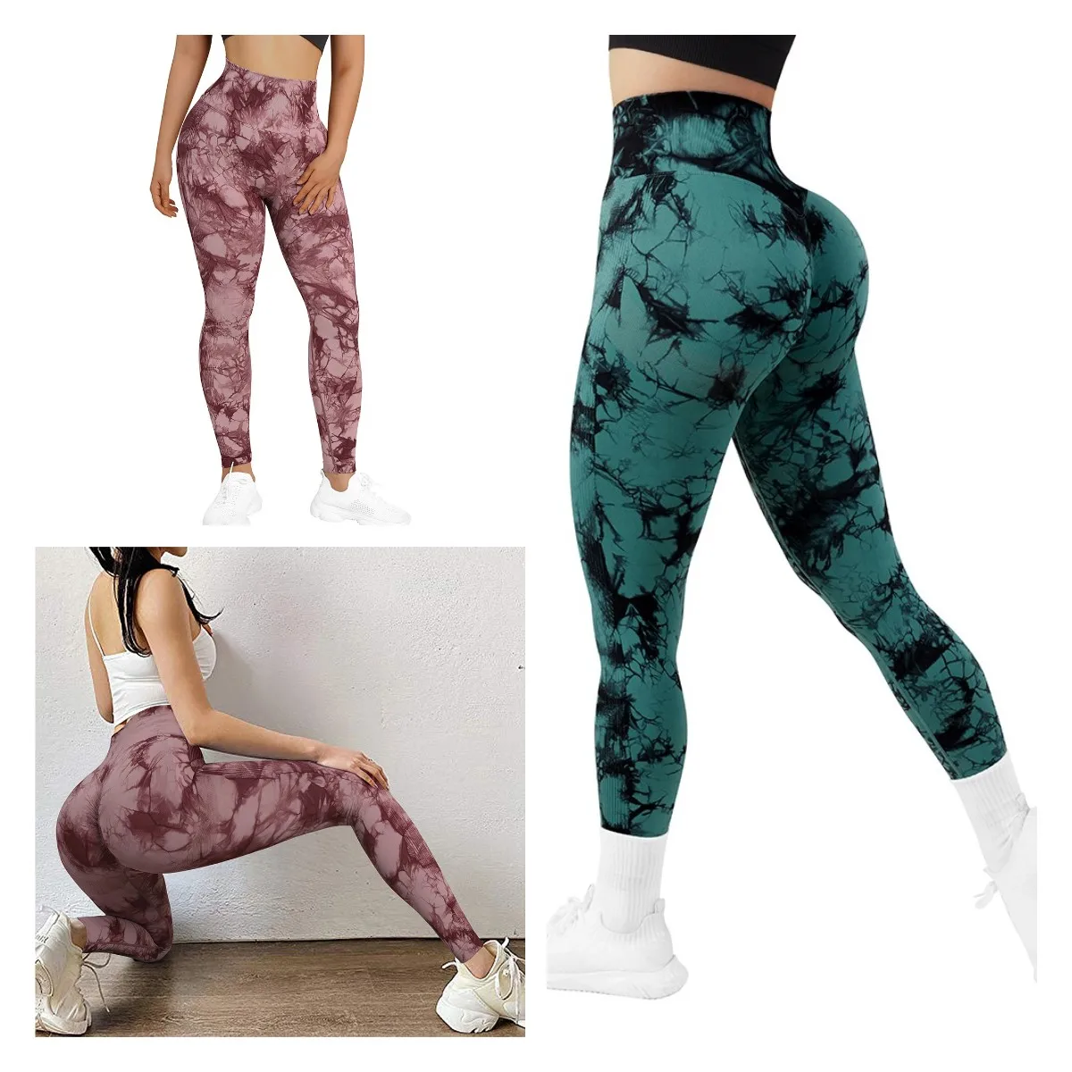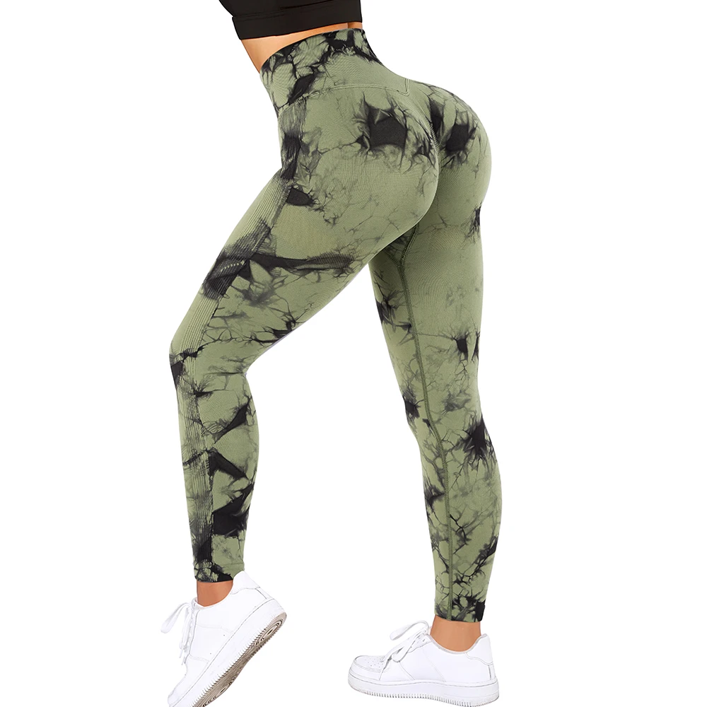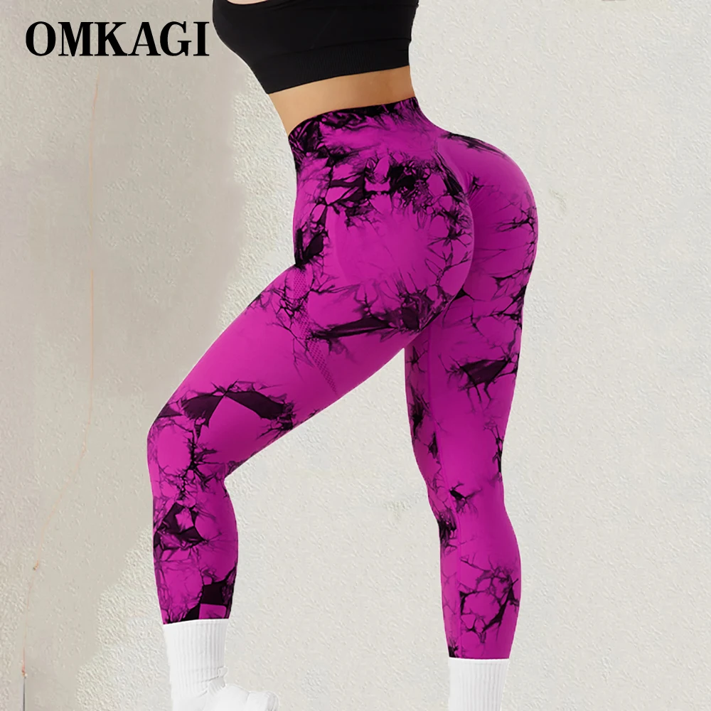 Отзывы о Женские спортивные Леггинсы OMKAGI Tie Dye пуш-ап для фитнеса женские бесшовные