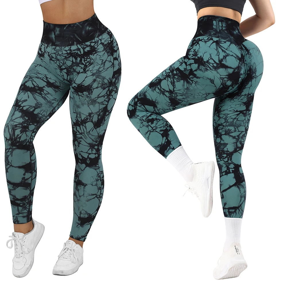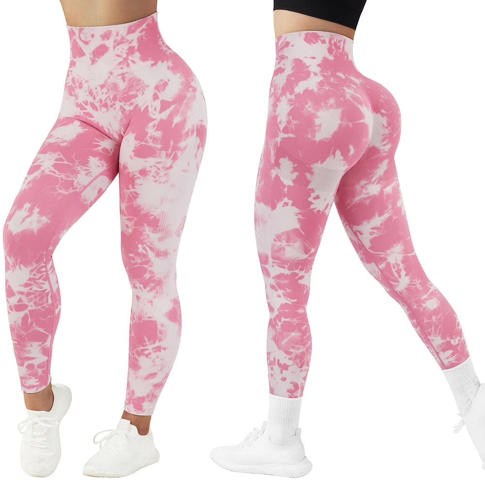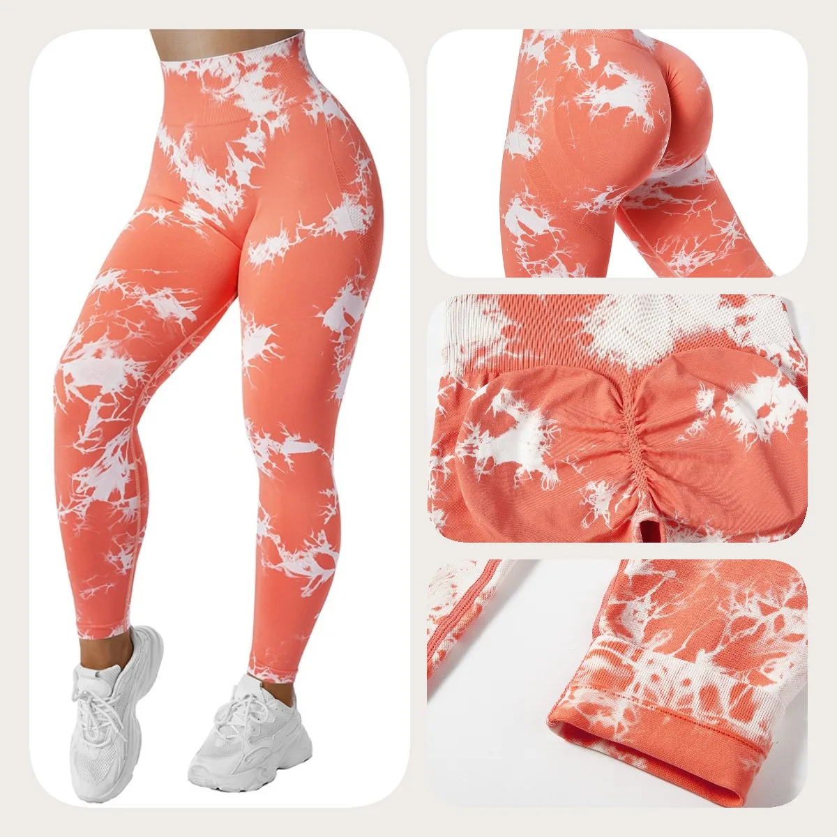 Отзывы о Женские спортивные Леггинсы OMKAGI Tie Dye пуш-ап для фитнеса женские бесшовные