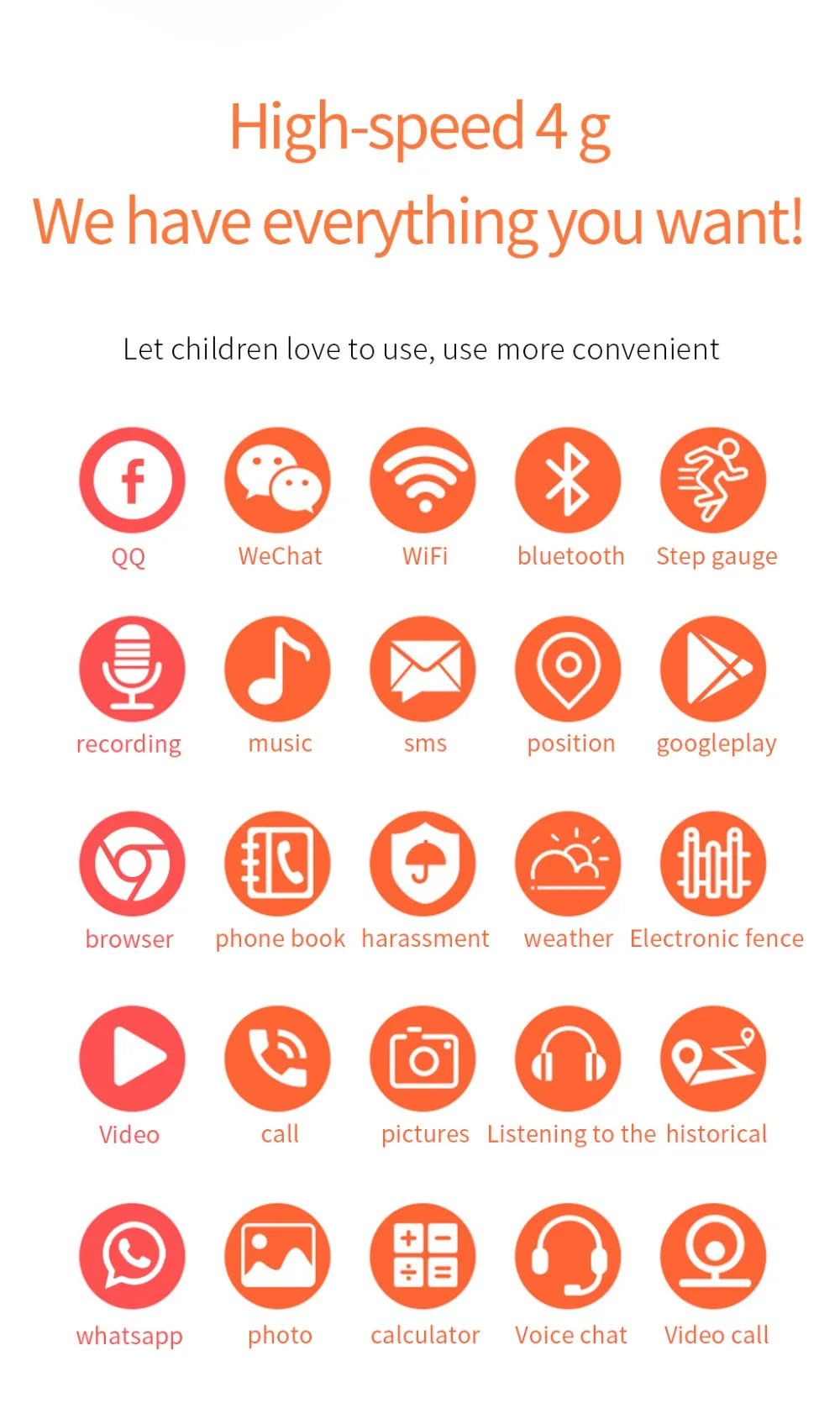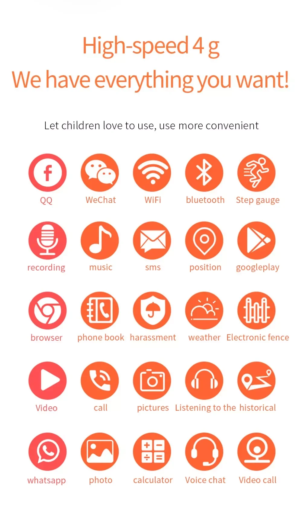 Часы поддерживают монитор здоровья, как шагомер, отслеживание истории, мониторинг сна, как и приложение для обучения. Пусть дети имеют безопасное и забавное детство.