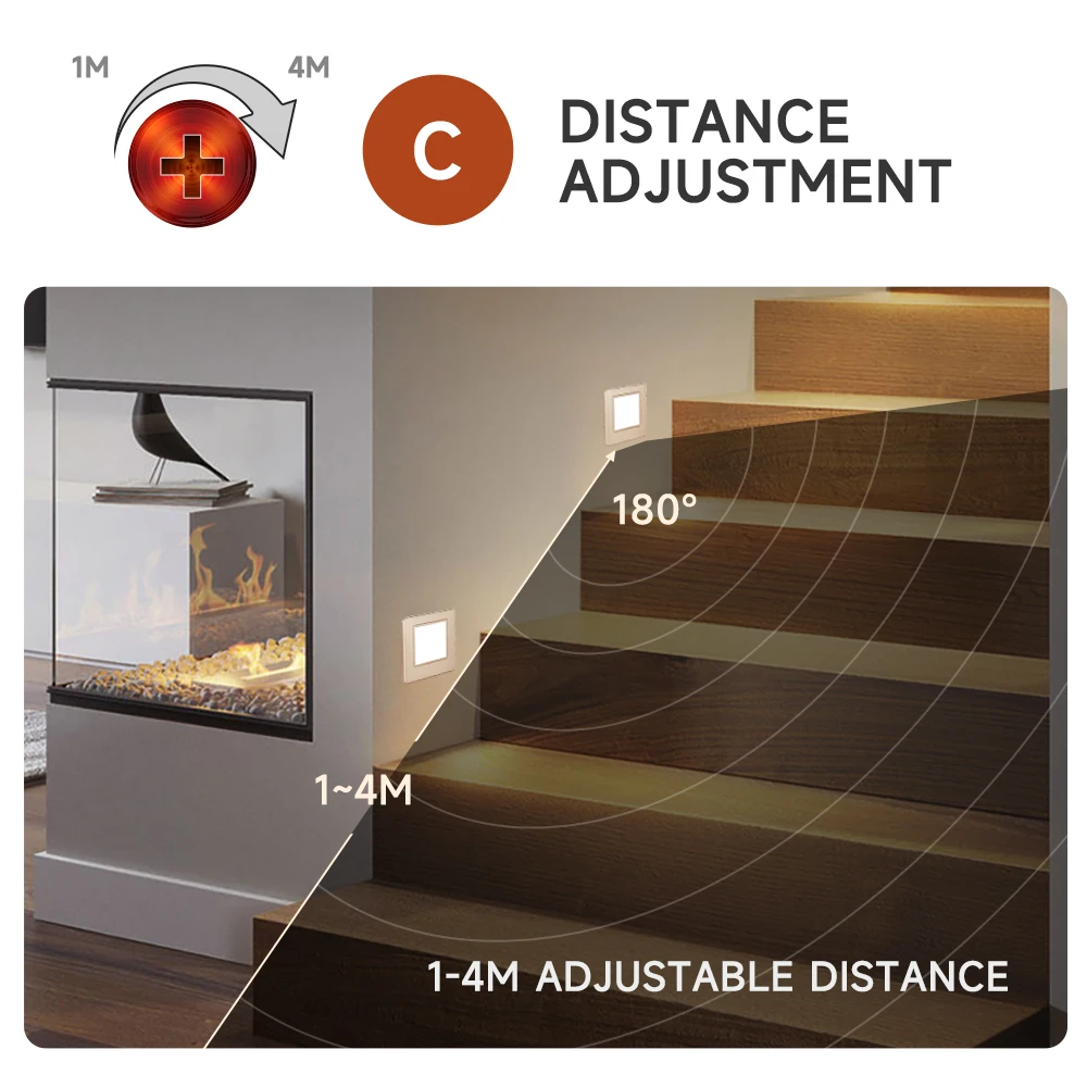 Расстояние срабатывания можно отрегулировать до 1-4 метра