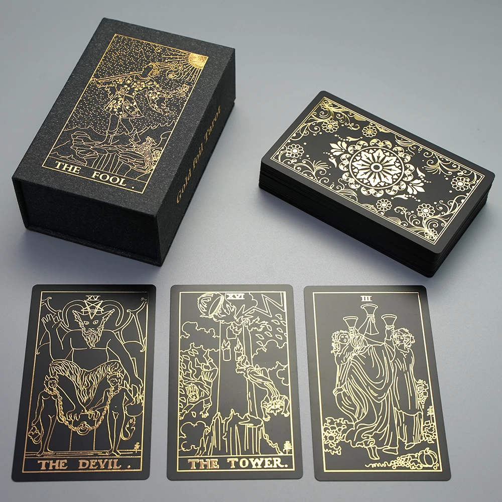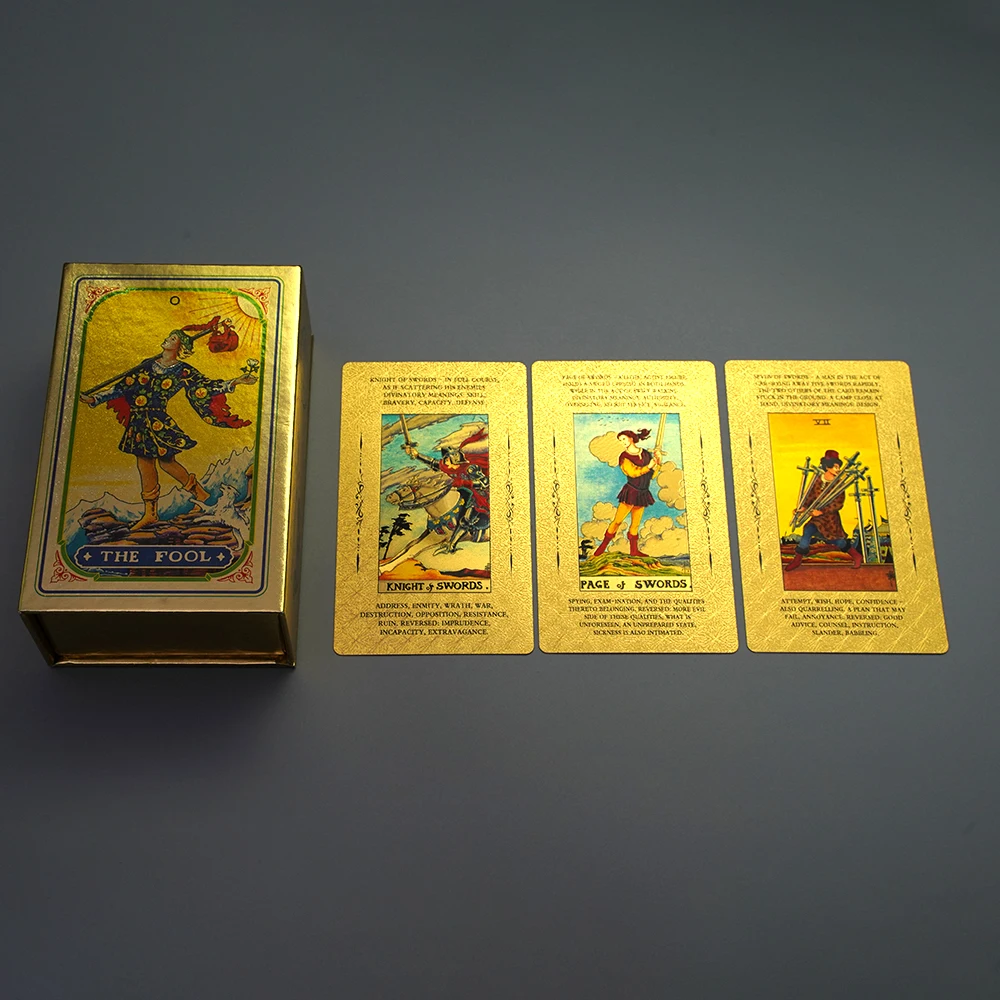 78 78 карт Таро из золотой фольги Deck】- 78 классических дизайнов таро. Необыкновенное чувство ретро-дизайна. Каждая карта изготовлена из золотой фольги. Очень изысканный и роскошный. Воспроизводите бесконечное значение классического таро.