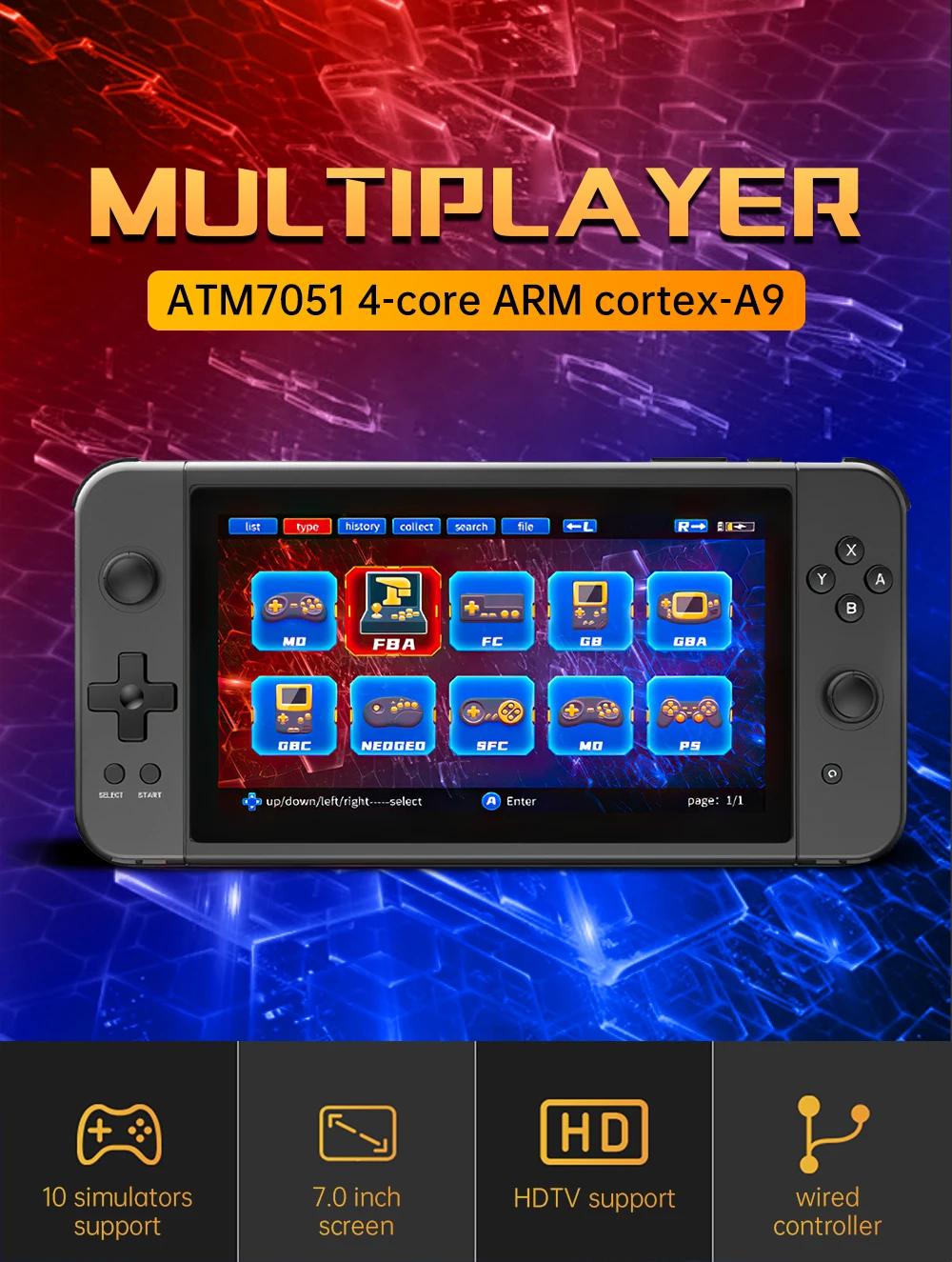 POWKIDDY/новая портативная игровая консоль X70, 7 дюймов, HD экран, ретро игра, дешевые подарки для детей, Поддержка игр с двумя играми