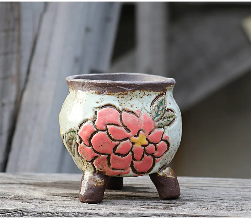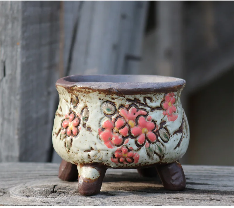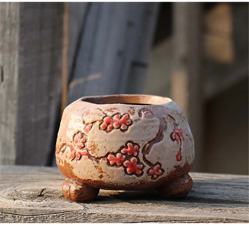 Нордическая ручная роспись Фиолетовый песок горшок домашний декор керамический цветочный горшок керамика глина дышащий цветочный горшок для суккулентных растений квадратная раковина